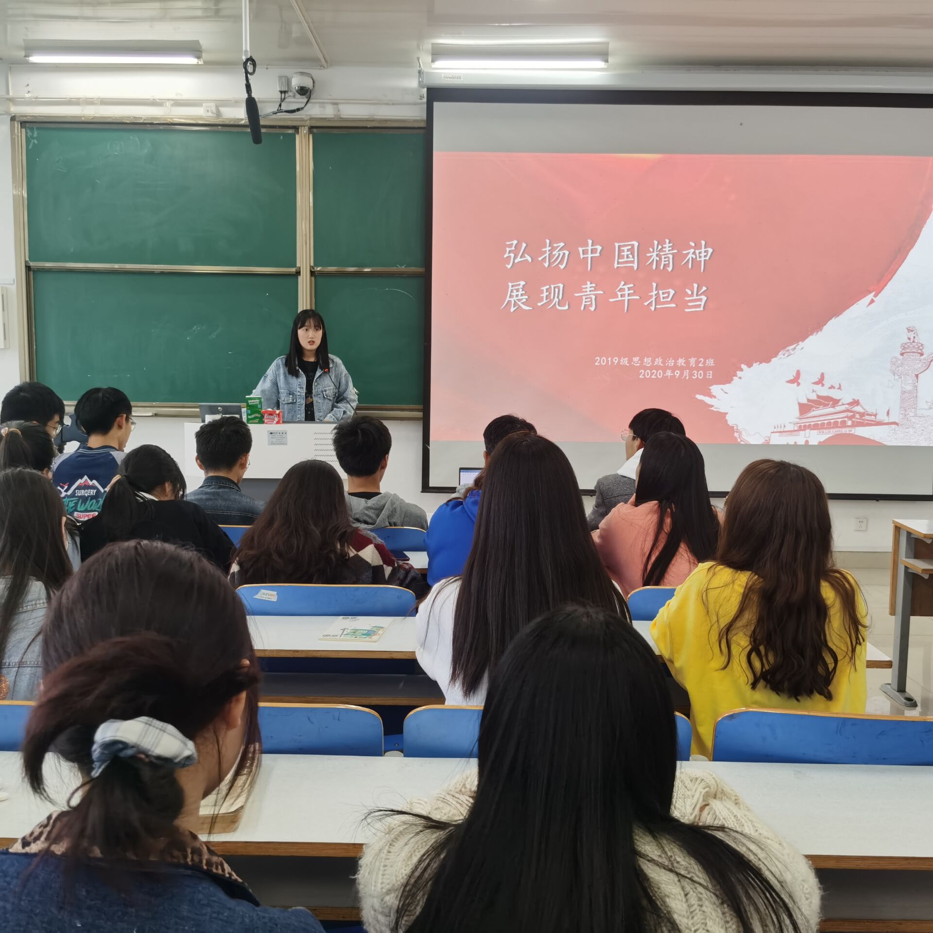 10月4日下午,beat365亚洲版官网2019级思想政治教育二班在社科楼514教室召开了“弘扬中国精神,展现青年担当”主题团课。2019级思想政治教育二班全体成员共同参会。会议由团支书孙雅娴主持。