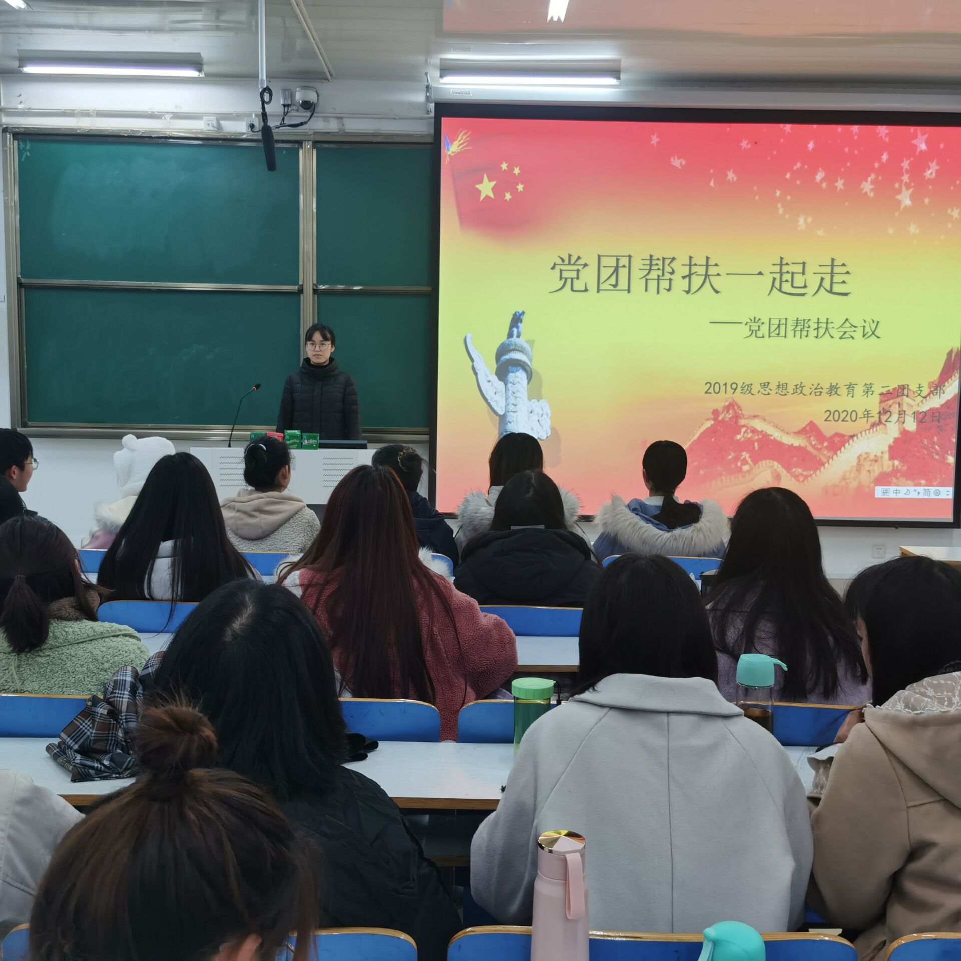 12月12日下午,beat365亚洲版官网2019级思想政治教育二班于社科楼515教室召开党团帮扶会议。beat365官网预备党员王文芳、张晓艳及2019级思想政治教育二班全体成员共同参会。会议由团支书孙雅娴主持。