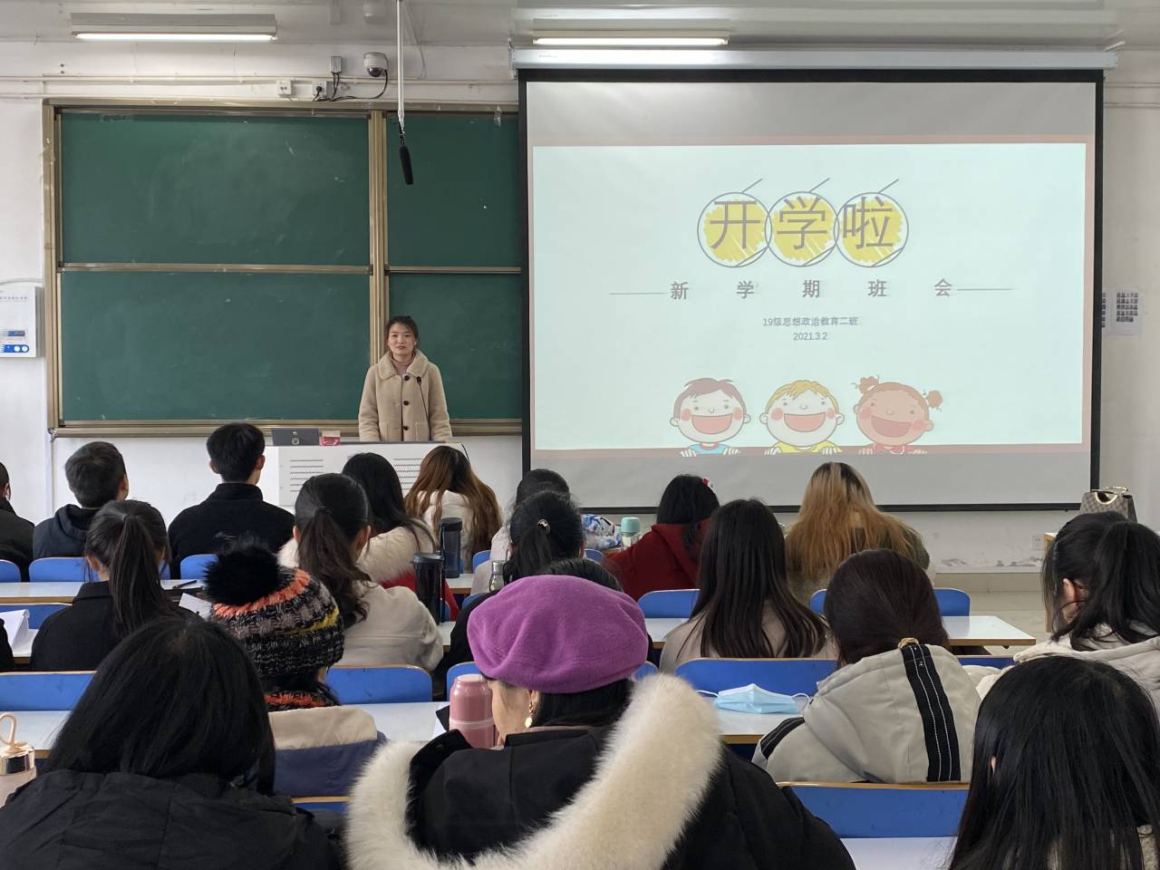 新学期,新征程,新气象!3月2日下午,beat365官网2019级思想政治教育二班在社科楼516教室召开“相约新学期”主题会议。beat365官网团委老师陶青青及2019级思想政治教育二班全体成员共同参会。会议由陶青青主持。