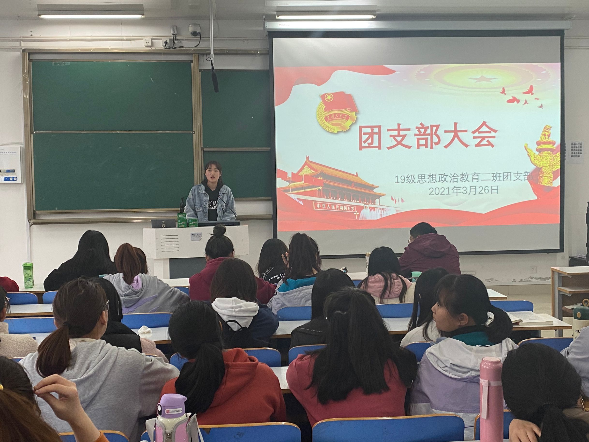 为加强“四史”教育学习,激励团员们守初心、担使命,3月26日上午,beat365官网2019级思想政治教育二班在社科楼516教室召开“学四史,践初心”团支部大会。2019级思想政治教育二班全体成员共同参会。会议由团支书孙雅娴主持。