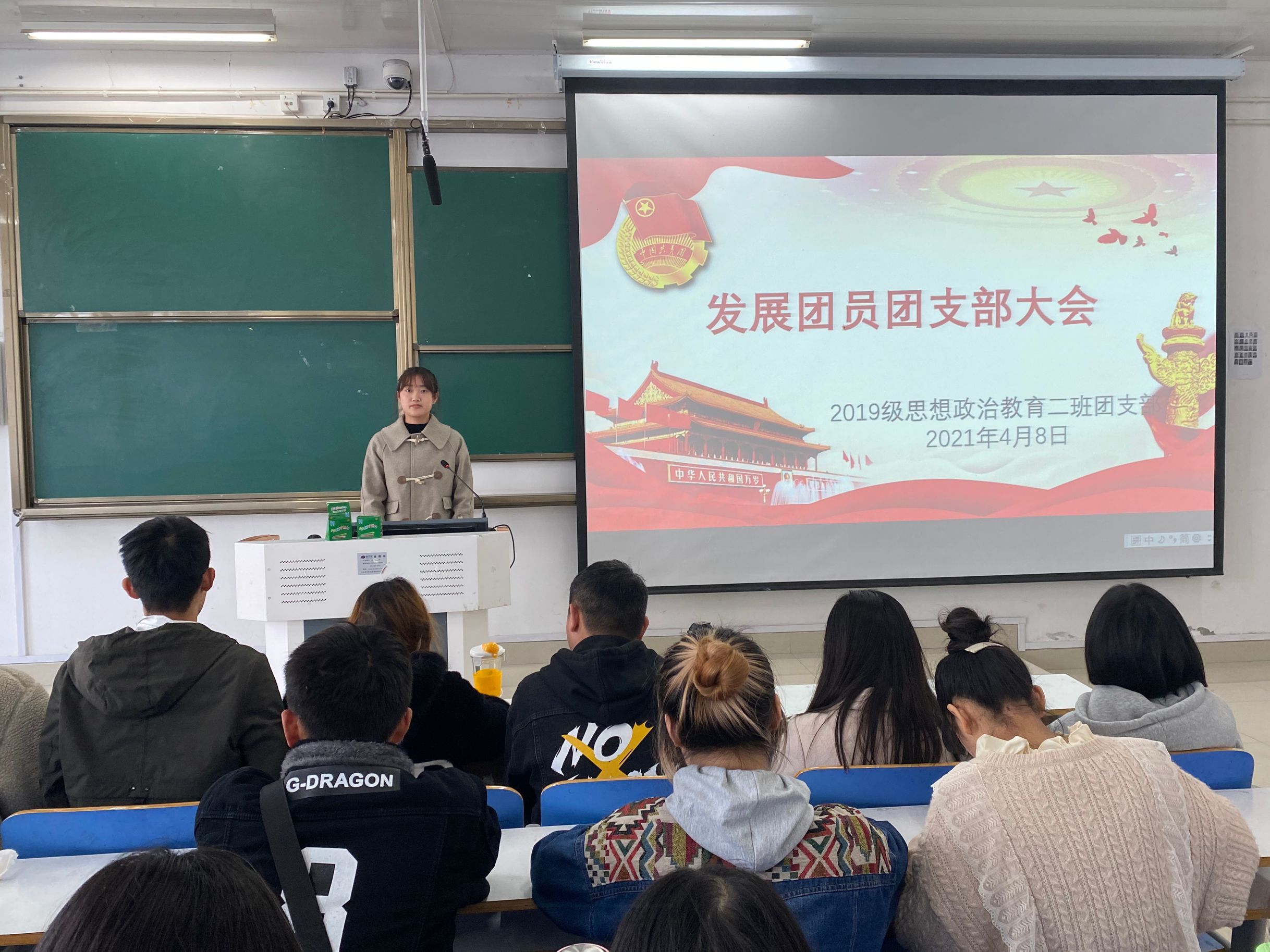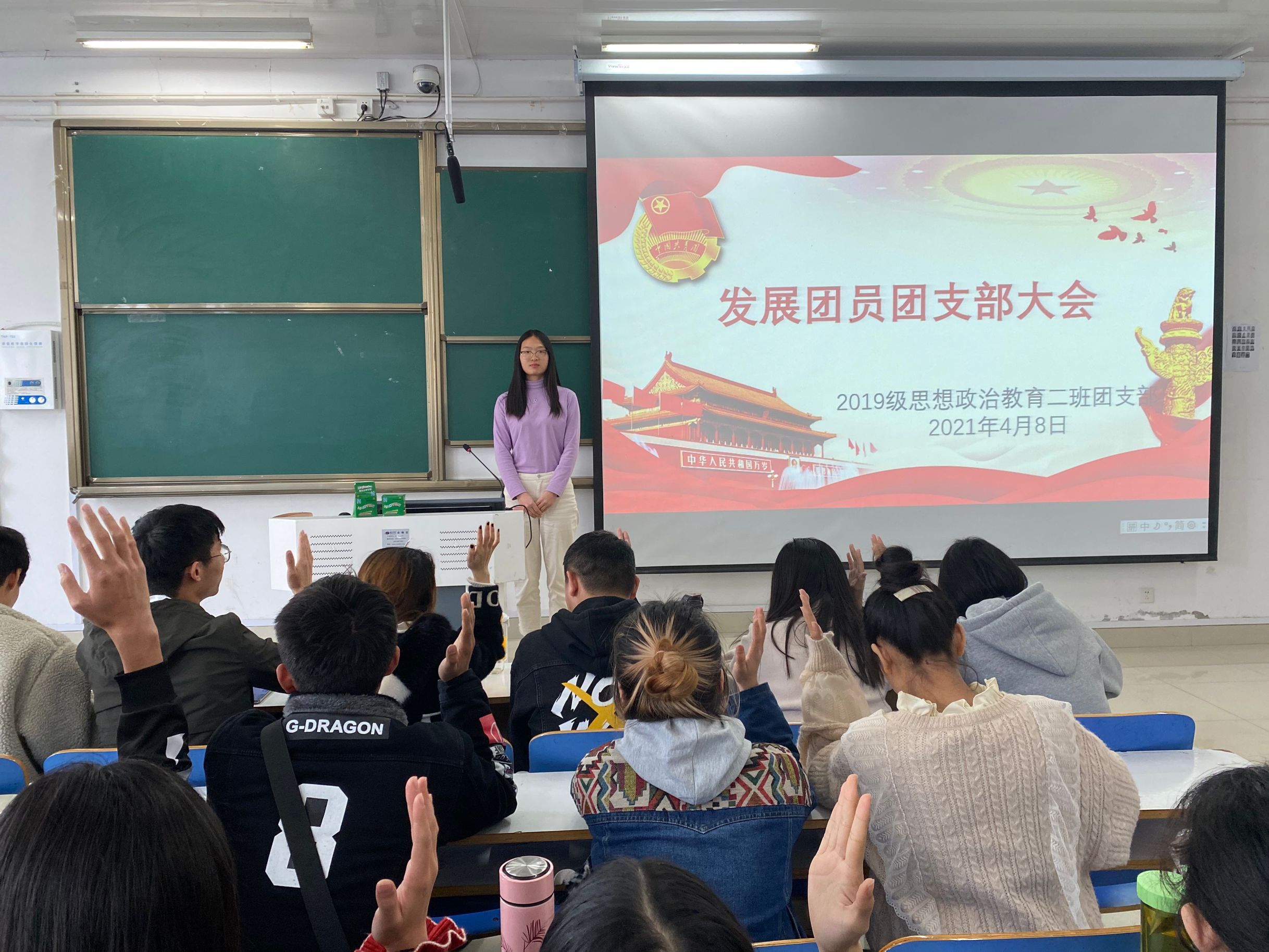 为不断深化团的阵地建设,更好地发挥团的组织优势和活动优势,4月8日上午,beat365官网2019级思想政治教育二班在社科楼516教室召开“发展新团员,注入新力量”支部大会。2019级思想政治教育二班全体成员共同参会。会议由团支书孙雅娴主持。