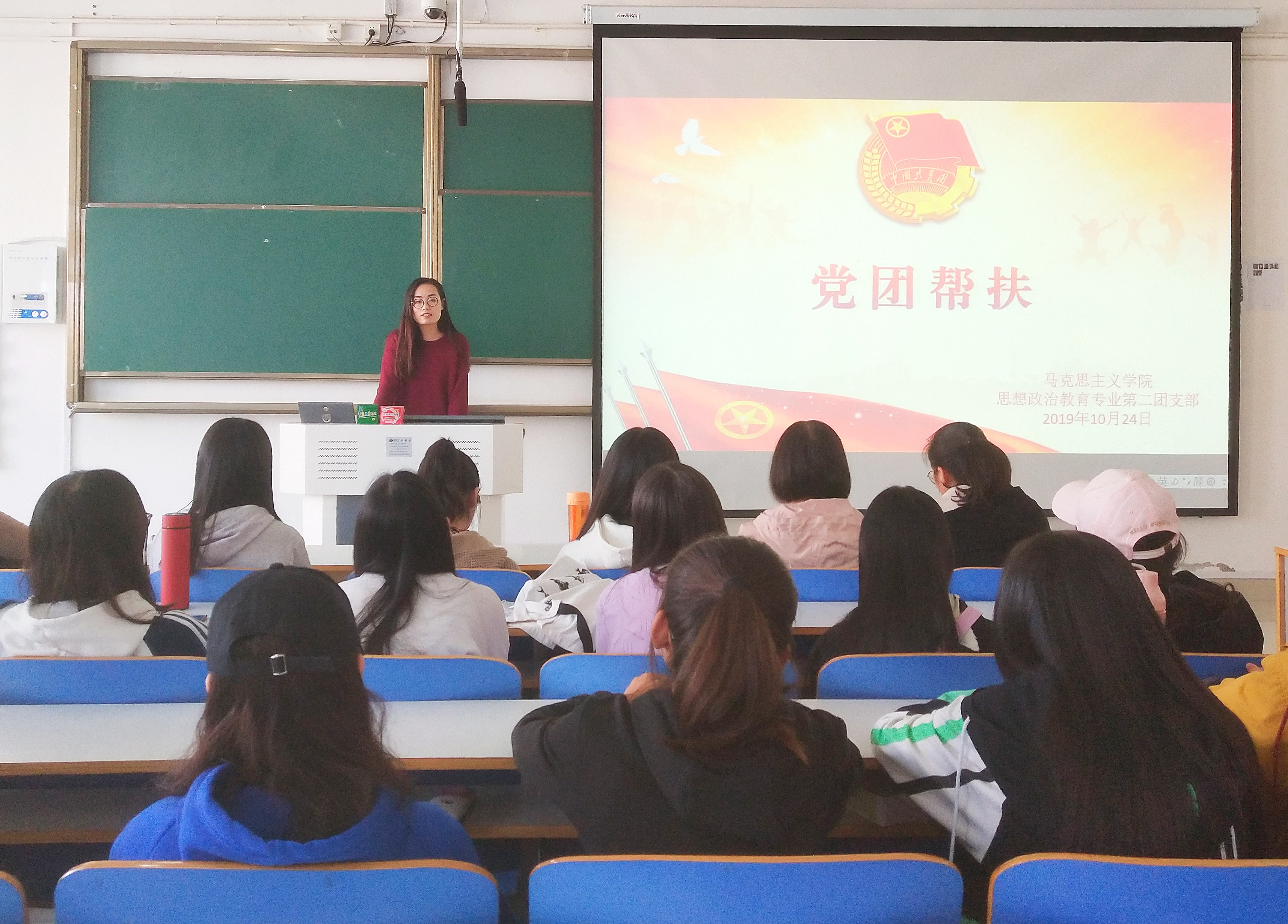 10月24日上午,beat365官网2018级思想政治教育二班在社科楼516教室顺利开展党团帮扶活动。我班邀请学生党员代表韩嘉航参加本次交流活动。活动由团支书黄子晋主持。