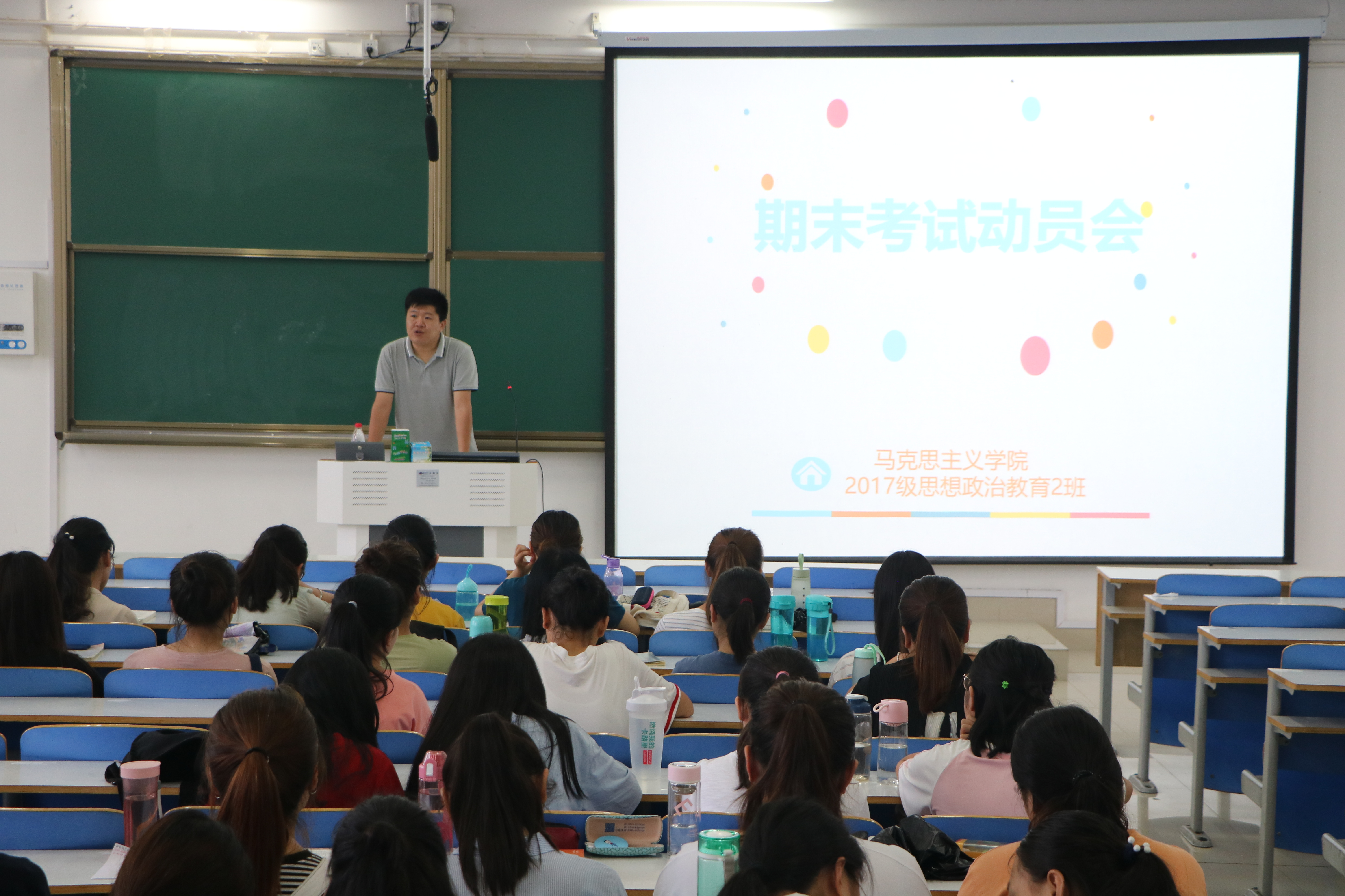 6月21日上午,beat365亚洲版官网2017级思想政治教育二班在社科楼514教室召开期末考试动员会,班级辅导员孙绪曙及2017级思想政治教育二班全体成员参加本次会议,会议由班长艾子元主持。