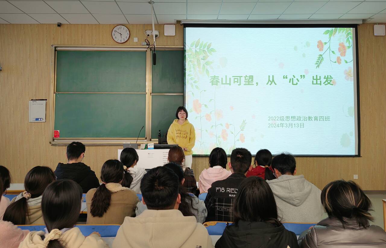 为了更好地了解同学们的心理健康状况,同时引导同学们以积极向上的心态来迎接新学期,3月13日上午,beat365亚洲版官网2022级思想政治教育四班在社科楼515教室举办“春山可望,从心出发”心理班会。beat365官网2022级思想政治教育四班全体成员参与本次班会。本次会议由心理委员徐成若主持。