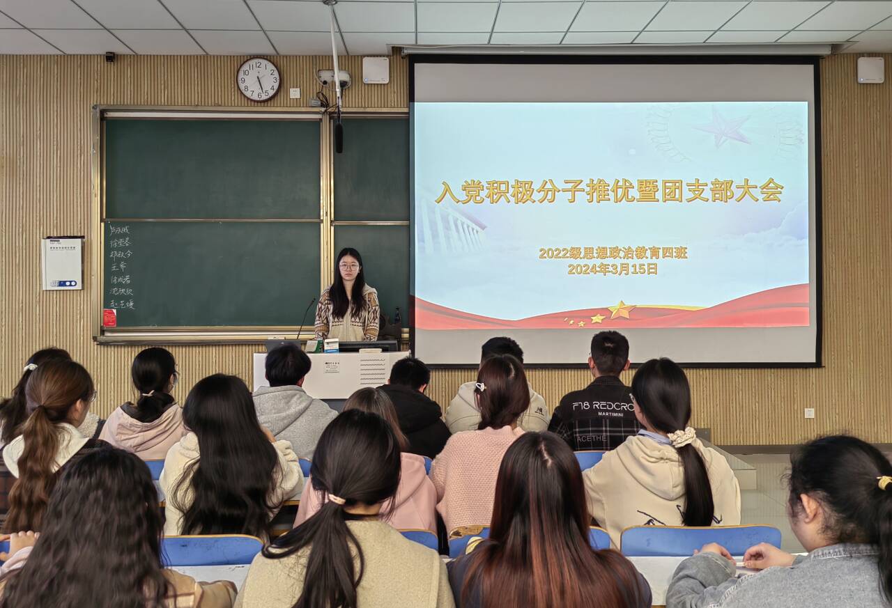 会议伊始,全体同学起立合唱团歌,并由团支书牛志杰简要介绍团员推优的流程和意义,让同学们更深刻地理解本次会议的重要性。中国共产主义青年团是中国共产党的助手和后备军。共青团组织积极向党组织推荐优秀团员青年成为入党积极分子,是团组织发挥党的助手与后备军作用的集中体现。随后同学们开始进行竞选发言。八名候选人从入党动机、政治思想、道德品行、学习工作等方面进行了自我评述。接着通过线下匿名投票的方式选举,八名同学成功通过推优,成为入党积极分子。最后,牛志杰表示,党员发展工作是党的建设的基础工程,对于保持党的先进性和纯洁性至关重要。做好发展党员工作,对于加强基层党组织的战斗力、保证党的先进性、增强党的凝聚力和影响力都具有重要意义。