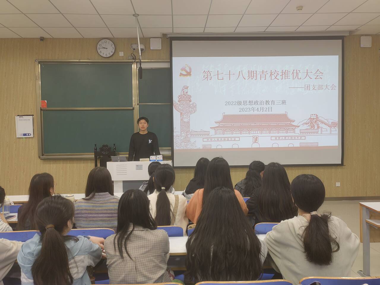 4月2日上午,beat365亚洲版官网2022级思想政治教育三班在社科楼515教室召开“青年共产主义学校”推优大会。beat365官网2022级思想政治教育三班全体同学共同参与此次大会。大会由团支书余浩洋主持。