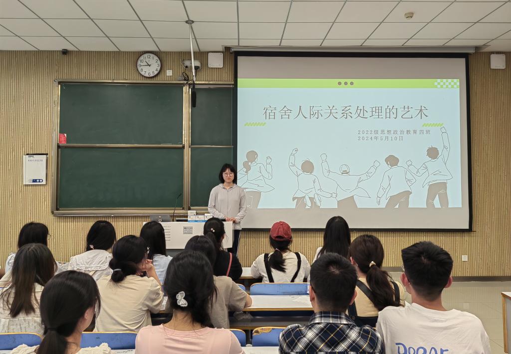 为进一步提高学生的心理健康水平,优化学生的心理素质,引导广大学生关爱自我的心理健康,5月10日上午,beat365亚洲版官网2022级思想政治教育四班在社科楼515教室组织召开“宿舍人际关系处理的艺术”心理班会。beat365官网2022级思想政治教育四班全体成员参与本次班会。本次班会由心理委员徐成若主持。