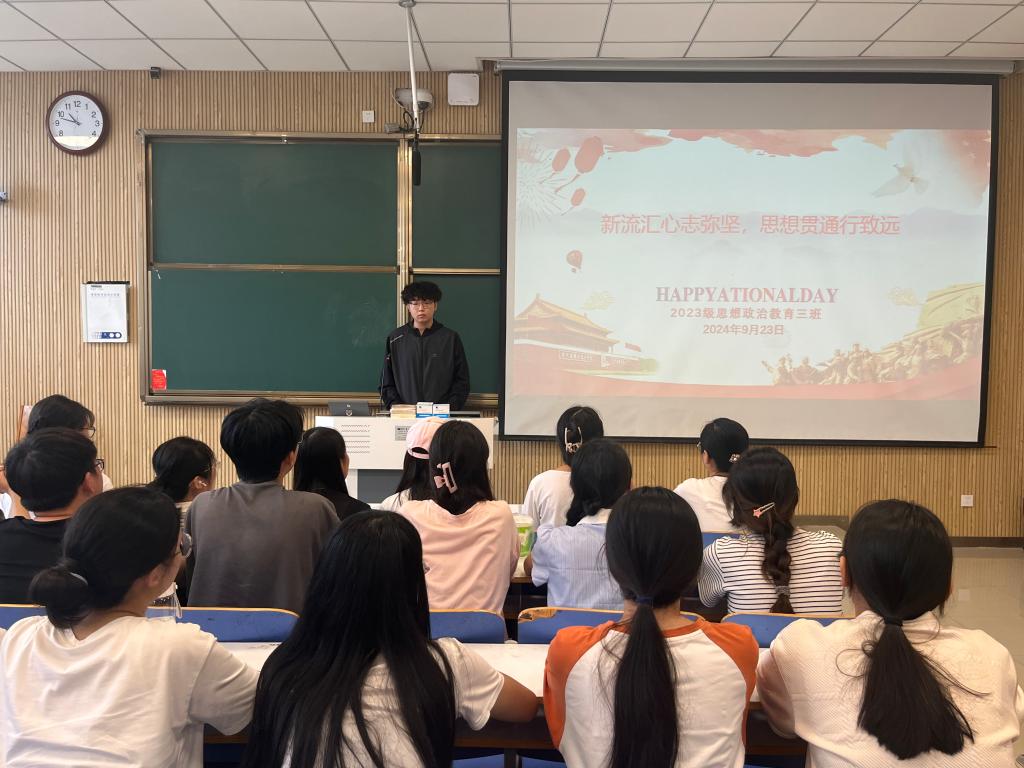 9月23日上午,beat365亚洲版官网2023级思想政治教育三班在社科楼515召开“新流汇心志弥坚,思想贯通行致远”主题团课。beat365官网2023级思想政治教育三班全体同学共同参与本次团课,团课由团支书郝瀚主持。
