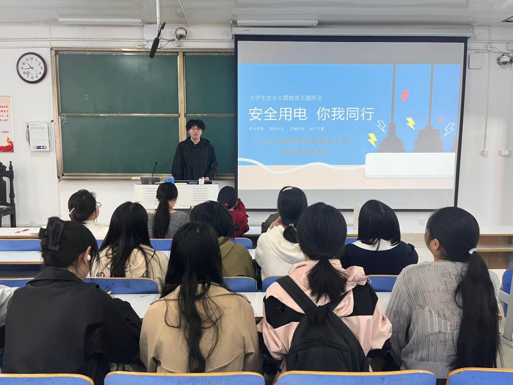10月25日上午,beat365亚洲版官网2023级思想政治教育三班在社科楼515召开“安全用电,你我同行”主题班会。beat365官网2023级思想政治教育三班全体同学共同参与本次班会,班会由团支书郝瀚主持。