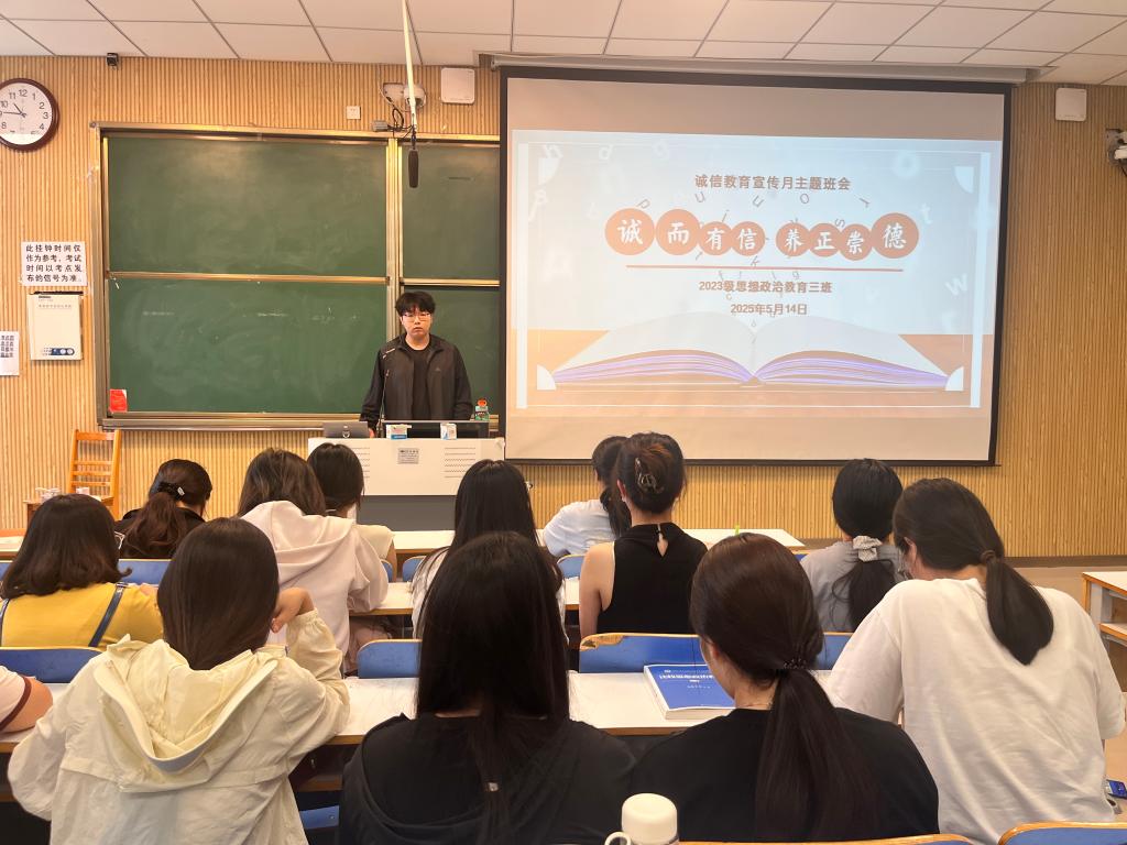 为践行社会主义核心价值观,弘扬诚信精神,5月14日上午,beat365亚洲版官网2023级思想政治教育三班在社科楼515召开“诚而有信,养正崇德”主题班会。beat365官网2023级思想政治教育三班全体同学共同参与本次班会,班会由团支书郝瀚主持。