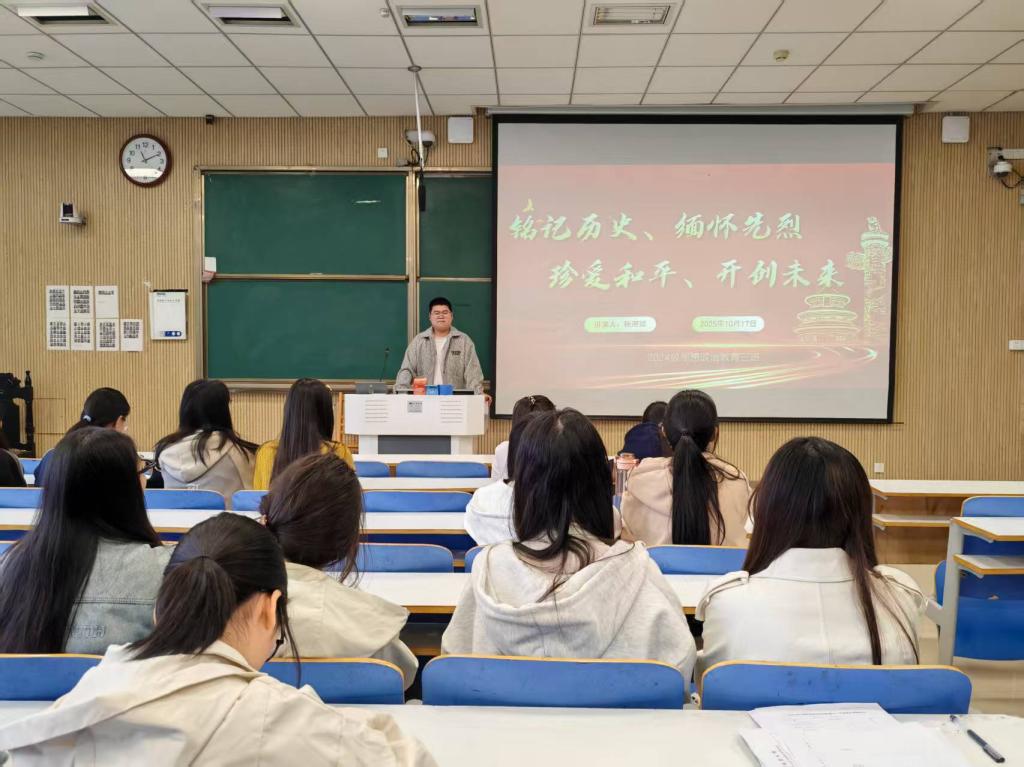 为引导青年学生传承红色基因,厚植爱国情怀,beat365亚洲版官网2024级思想政治教育三班于10月17日在社科楼515开展“铭记历史,缅怀先烈”主题团课活动。本次班会由班级团支书杨迎滨主持,全体同学共同参与。
