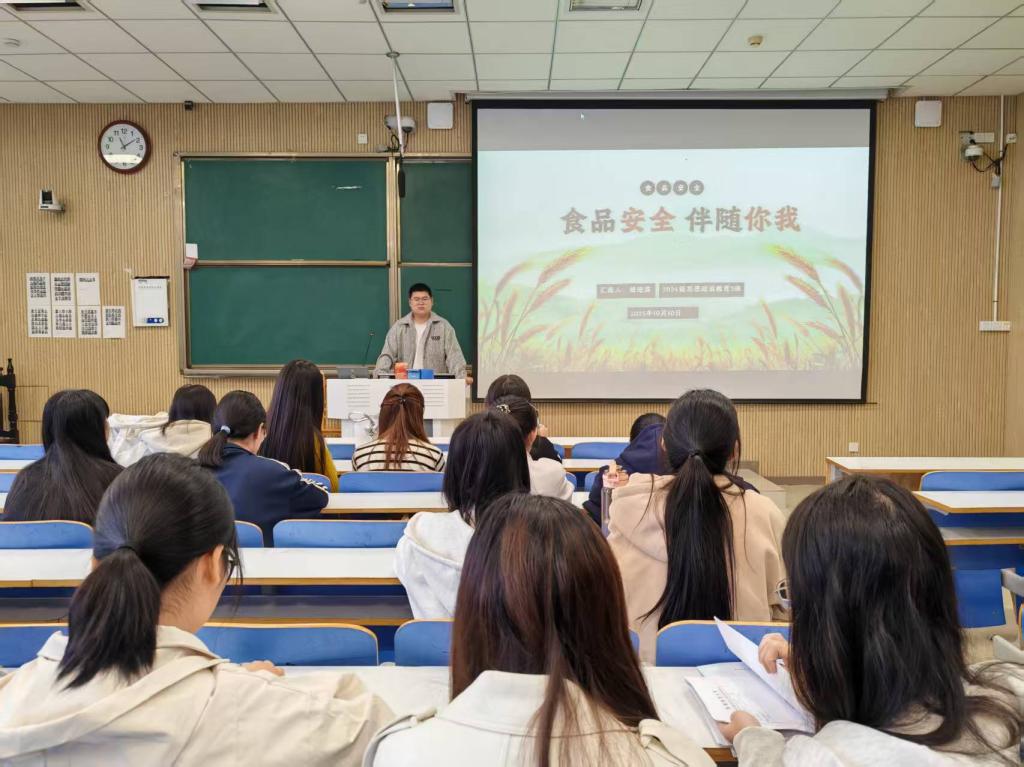 民以食为天,食以安为先。为进一步增强大学生的食品安全意识,引导同学们树立科学健康的饮食观念,10月10日,beat365亚洲版官网2024级思想政治教育三班开展了“食品安全,伴随你我”主题班会活动。本次班会由班长杨迎滨主持,全体同学积极参与。