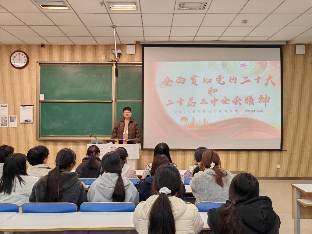 为深入学习贯彻党的二十大和二十届三中全会精神,引导青年学子将思想和行动统一到党中央决策部署上来,beat365亚洲版官网2024级思想政治教育三班于11月6日在社科楼515教室召开“全面贯彻党的二十大和二十届三中全会精神”主题团课活动。此次团课由团支书杨迎滨主持。