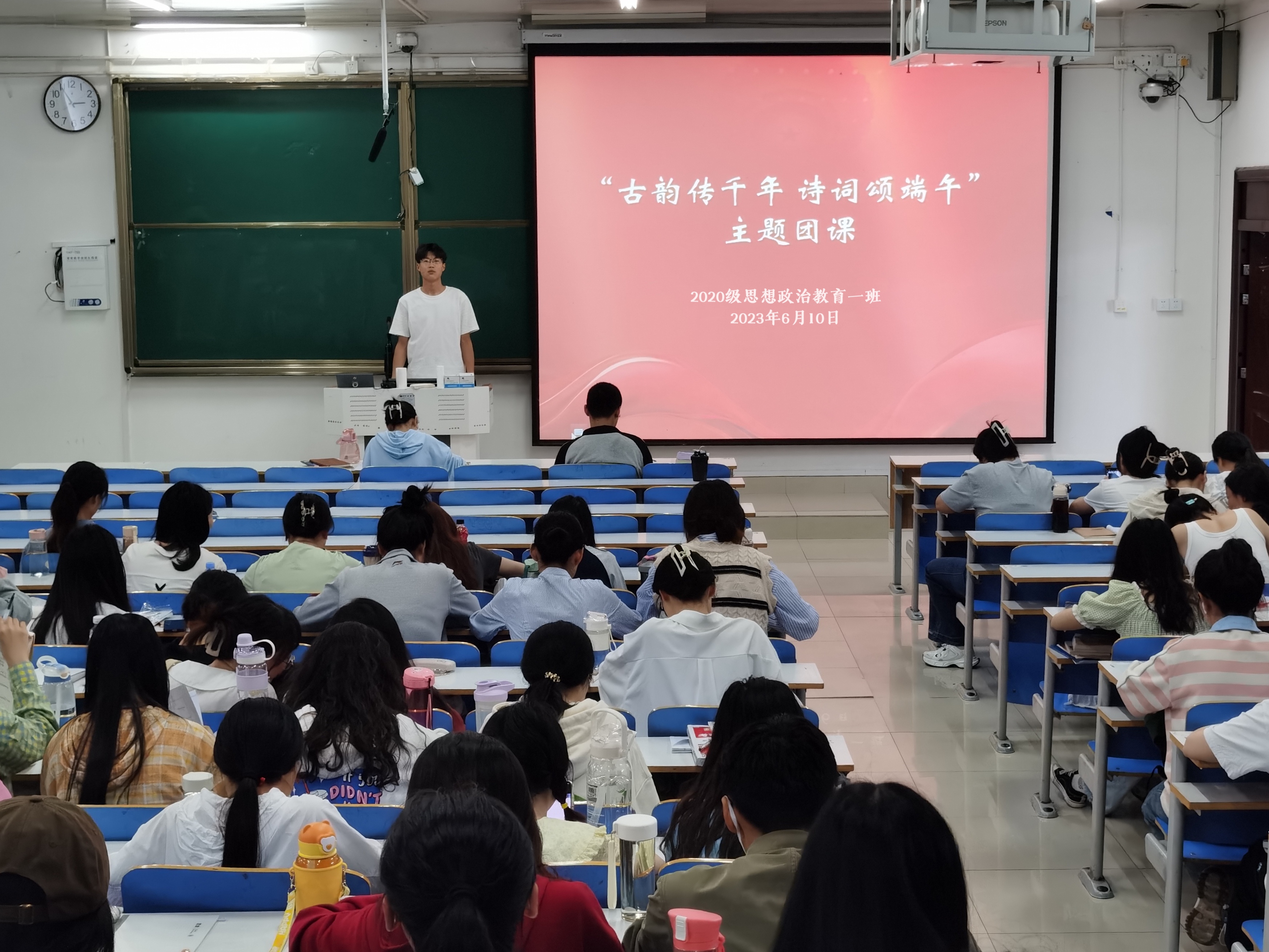 6月10日下午,beat365亚洲版官网2020级思想政治教育一班团支部在社科楼514教室开展“古韵颂千年,诗词颂端午”主题团课,2020级思想政治教育一班全体团员参加此次团课。团课由团支部副书记白帅豪主持。