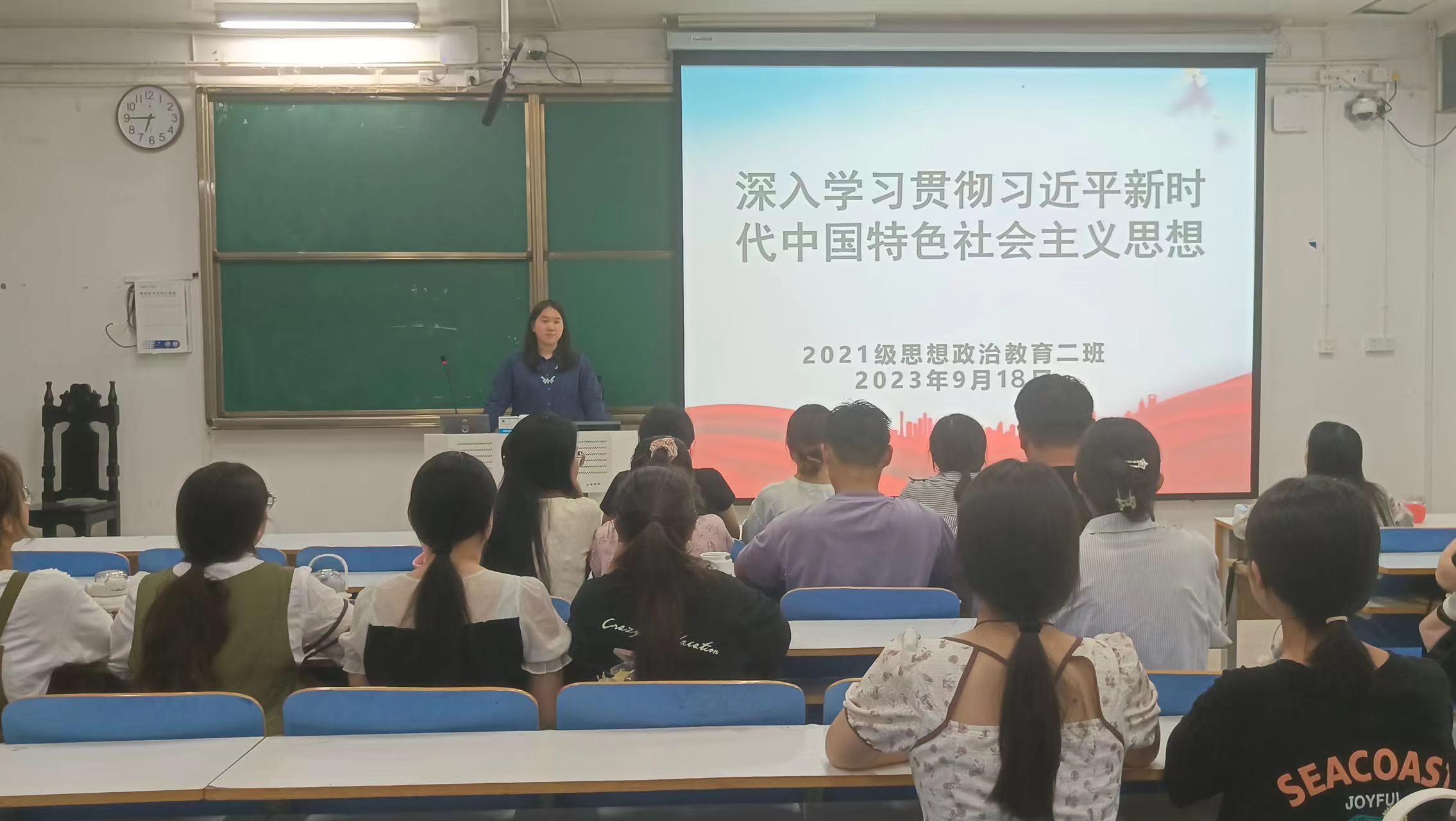9月18日下午,beat365亚洲版官网2021级思想政治教育二班在社科楼514教室召开“深入学习贯彻习近平新时代中国特色社会主义思想”主题团课。2021级思想政治教育二班全体团员参加此次团课。团课由团支书王婧欣主持。