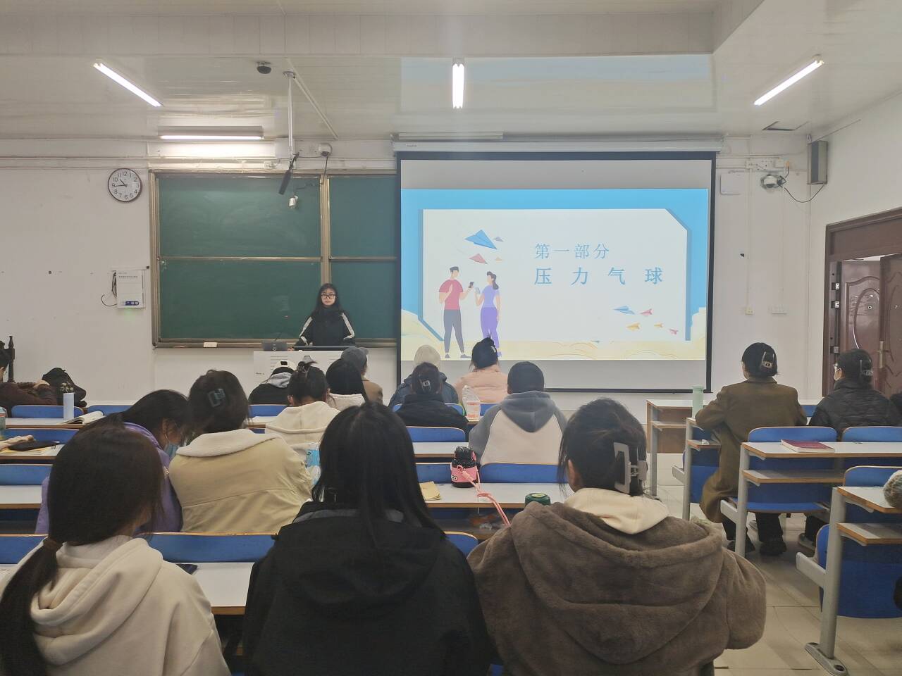 班会伊始,黄小妍指出,本次班会旨在让更多的学生关注心理健康问题,提高自我关爱意识,树立正确的心理健康观念,掌握正确的减压方法,培养积极的生活态度,促进自身全面发展和健康成长。接着,黄小妍带领同学们用心理图片进行压力测试,评估自身的压力水平,分析压力来源,引起同学们对自身压力的重视。随后,她为同学们讲解了如何保持乐观的心态,用积极的方式解决自身压力。同时,同学们也相互交流,分享自己的解压经验。最后,黄小妍对班会内容进行总结。她强调,压力是一种正常的心理现象,不要畏惧压力,要勇于正视压力,学会给自己减压。