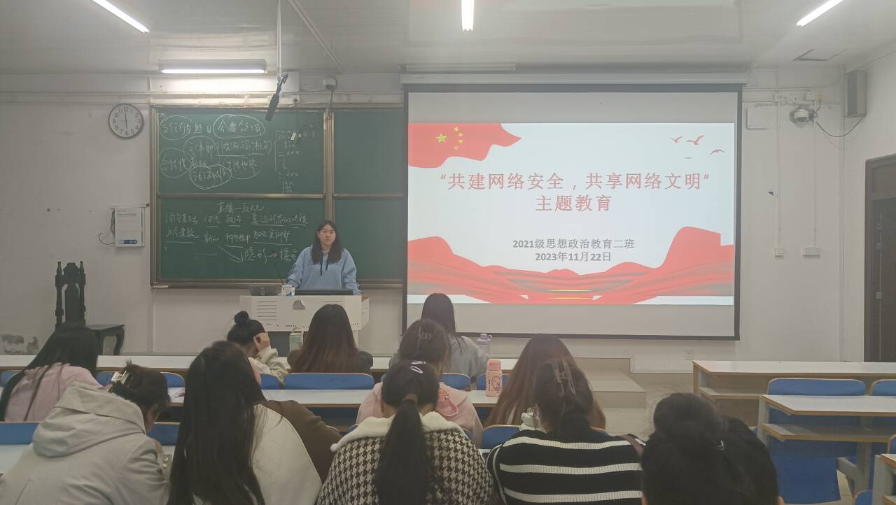 11月22日下午,beat365亚洲版官网2021级思想政治教育二班在社科楼514教室召开“共建网络安全,共享网络文明”主题班会。2021级思想政治教育二班全体同学参加此次班会。班会由团支书王婧欣主持。