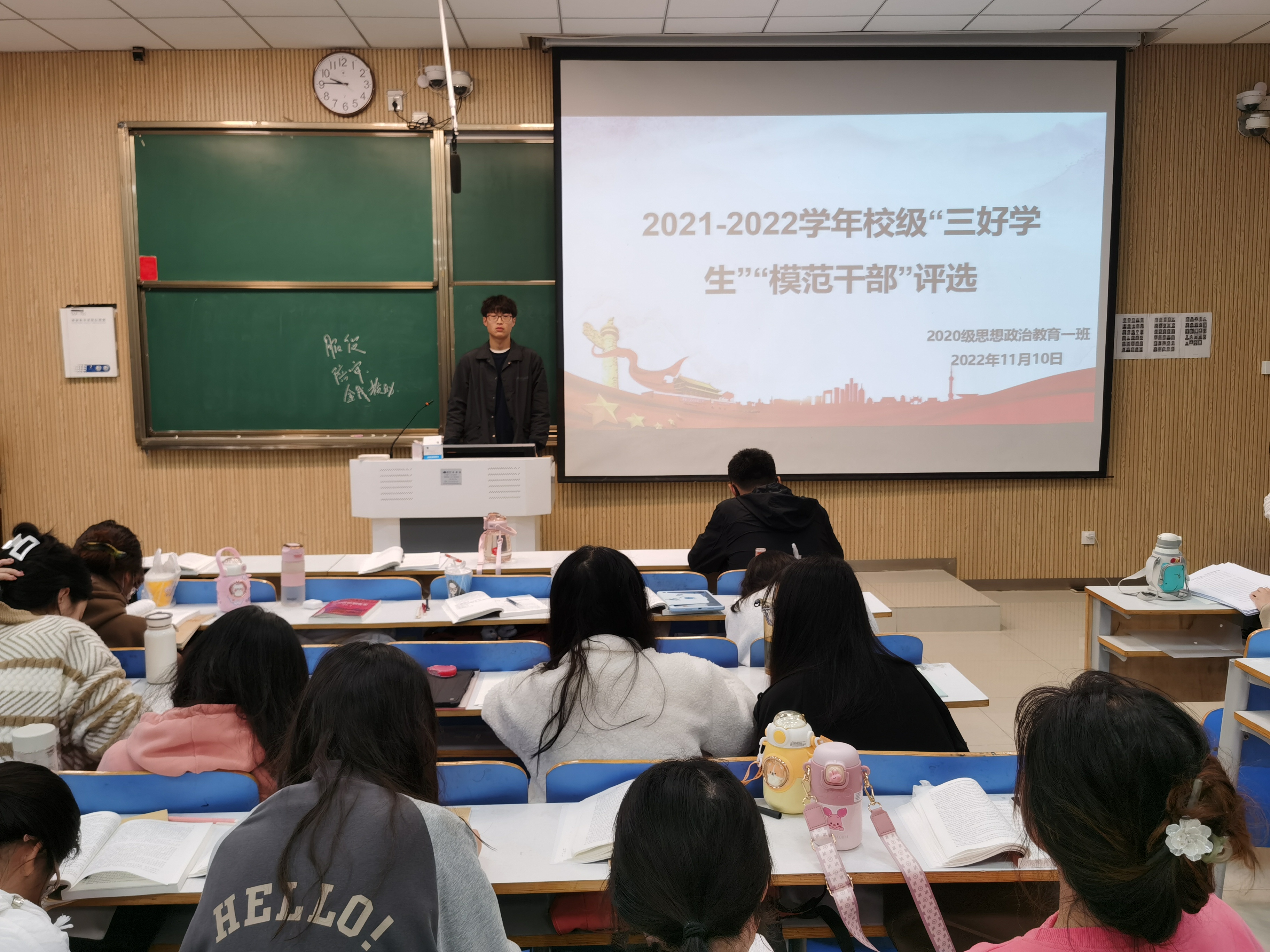11月10日上午,beat365亚洲版官网2020级思想政治教育一班在社科楼515教室开展2021—2022学年校级“三好学生”“模范干部”评选会,2020级思想政治教育一班全体成员参加此次会议。会议由副班长白帅豪主持。