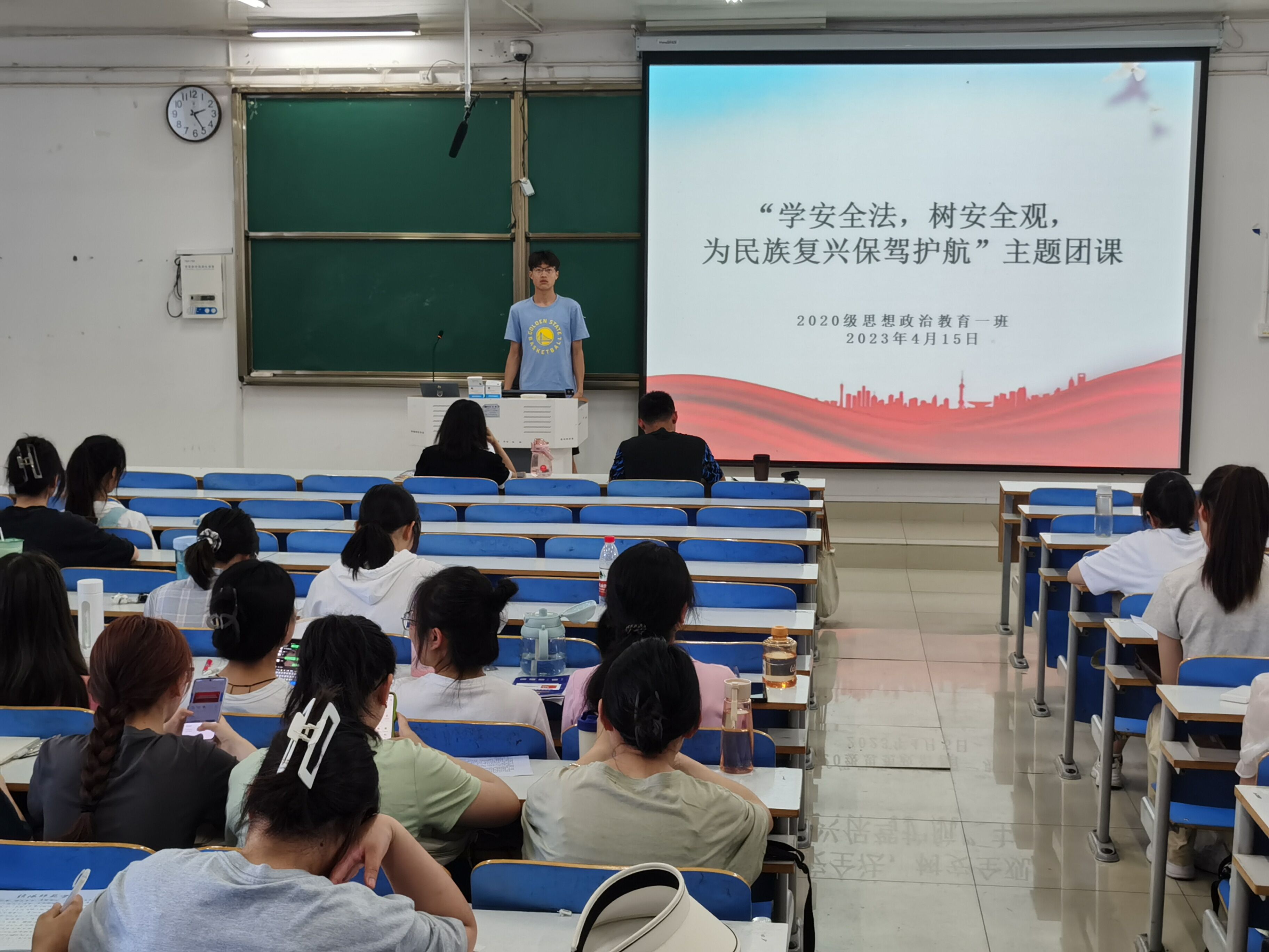 4月15日下午,beat365亚洲版官网2020级思想政治教育一班团支部在社科楼514教室召开“学安全法,树安全观,为民族复兴保驾护航”安全教育主题团课,2020级思想政治教育一班全体团员参加此次团课。团课由团支部副书记白帅豪主持。
