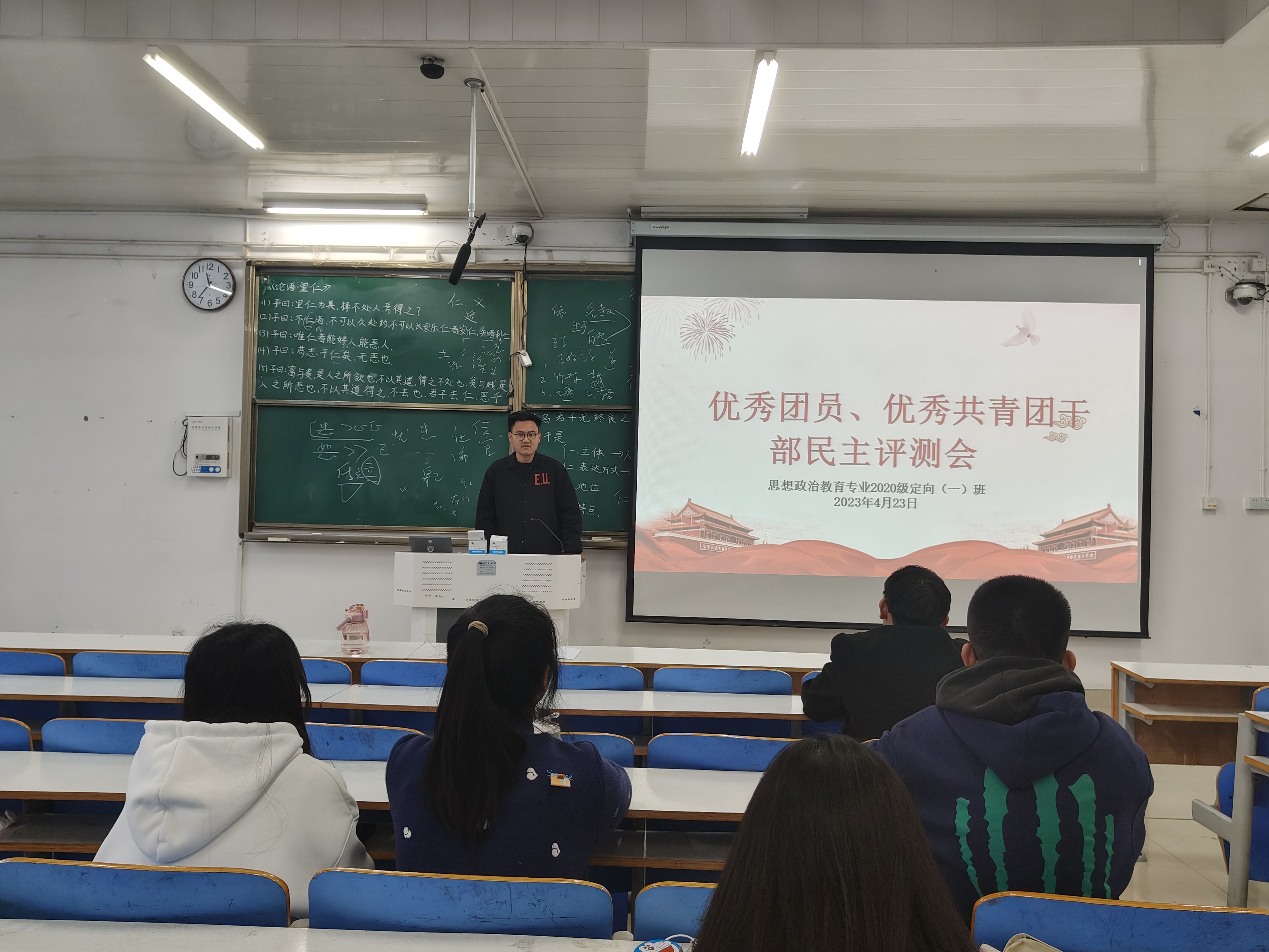 4月23日上午,beat365亚洲版官网2020级思想政治教育定向一班在社科楼514教室召开优秀团员、优秀共青团干部民主测评会,2020级思想政治教育定向一班全体同学参加了本次会议。