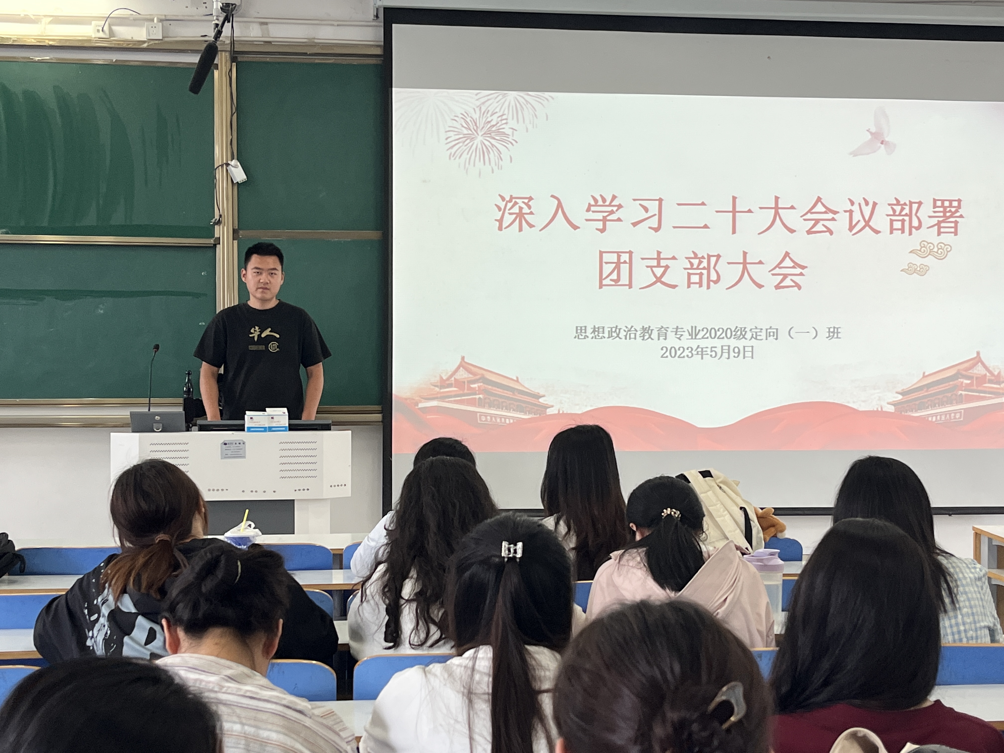 5月9日下午,beat365亚洲版官网2020级思想政治教育定向一班深入学习二十大会议部署团支部大会在社科楼514教室举行。会议由团支书朱紫峰主持。
