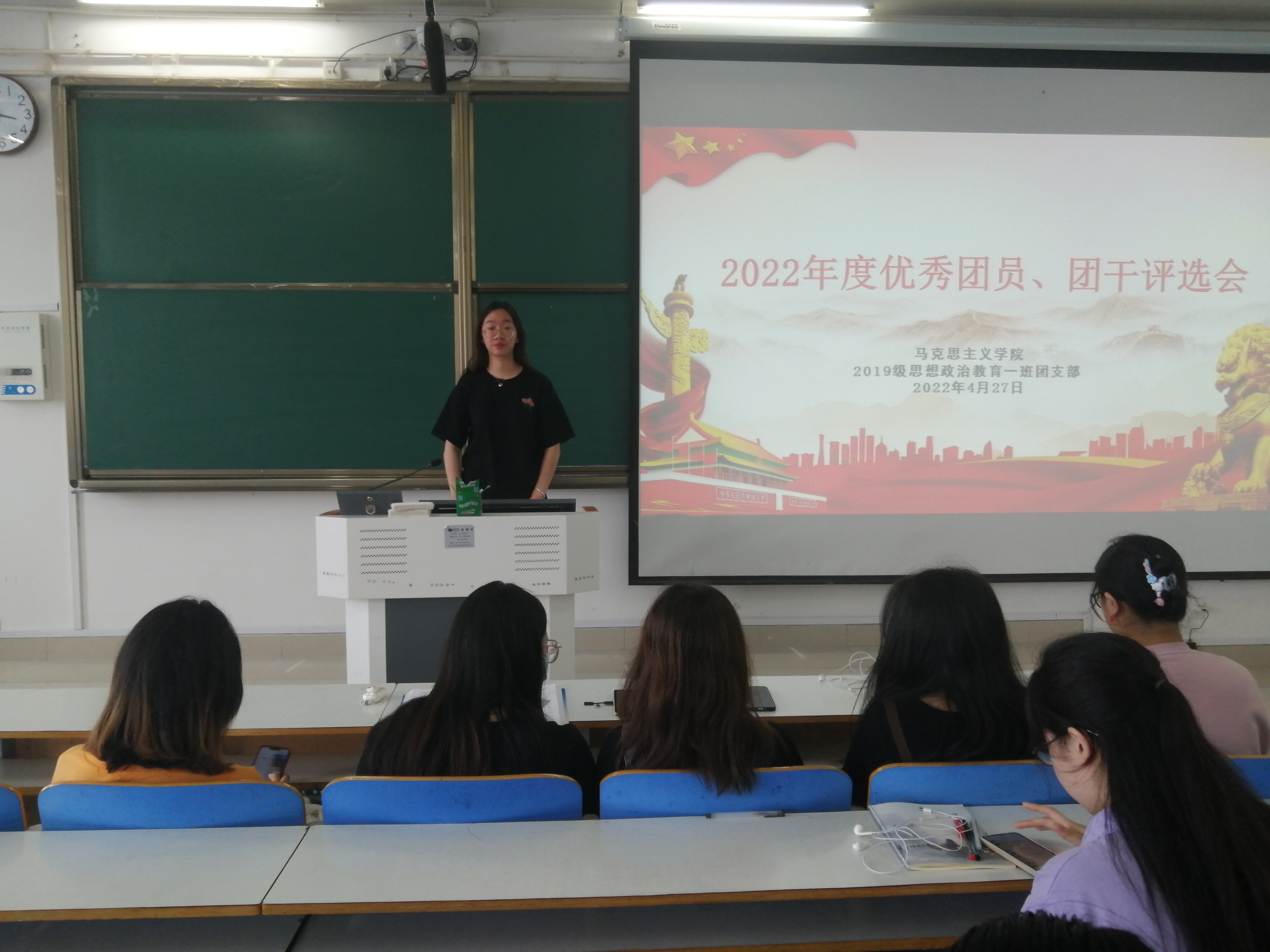 4月27日上午,beat365亚洲版官网2019级思想政治教育一班第一团支部在社科楼514教室召开2022年优秀团员、团干部评选会。beat365亚洲版官网2019级思想政治教育一班第一团支部全体成员参加本次会议,会议由班长贾子漪主持。