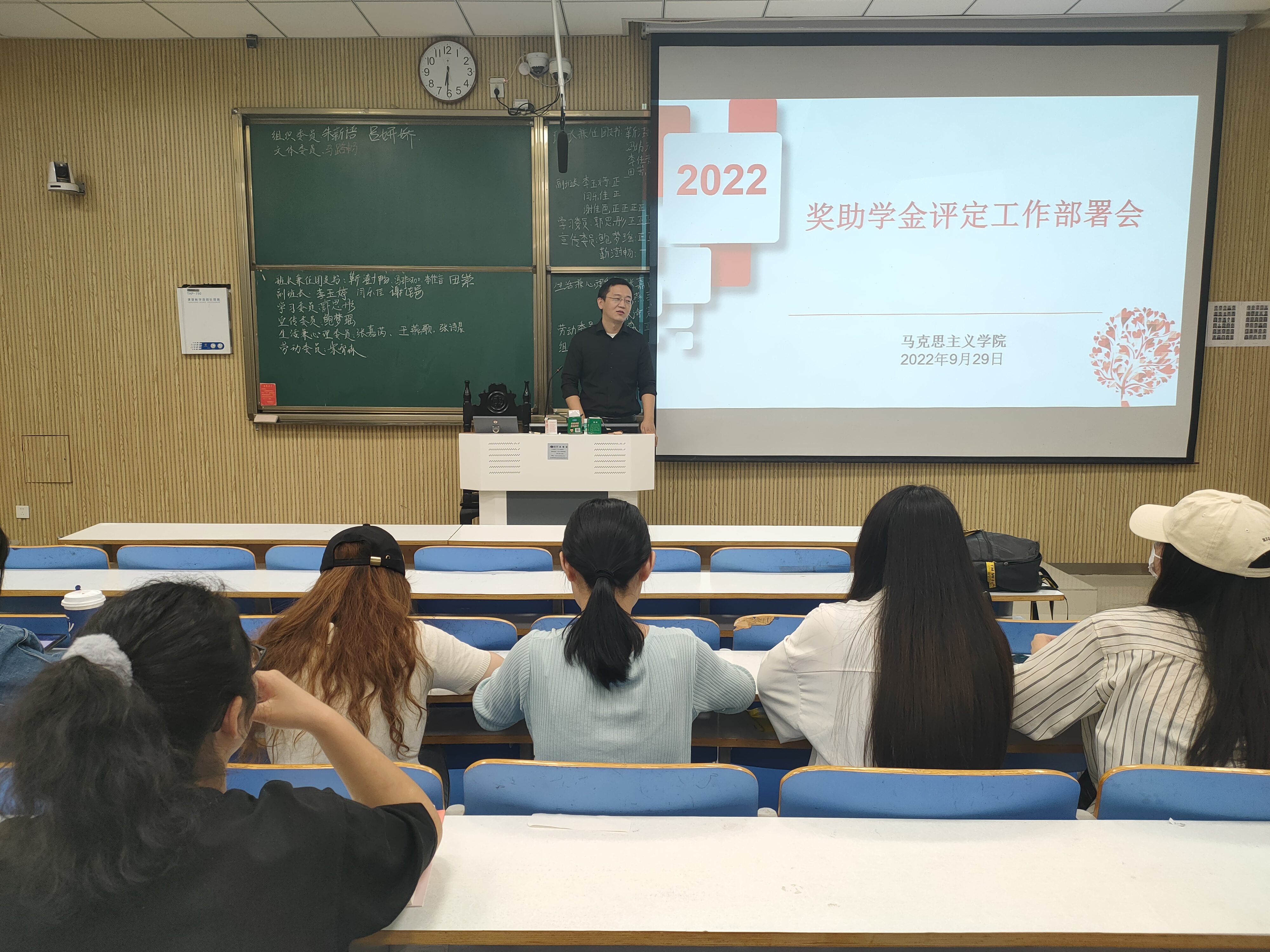 会议伊始,曹栋在会上就家庭经济困难学生及国家奖助学金的评选标准、认定对象、认定原则、认定程序及注意事项做出详细说明,要求在评定、审核等工作中坚持公正、公平、公开的评选原则,做好评选期间的存档、审核、公示等工作。接着,曹栋表示在奖学金评定过程中有任何问题可以找老师反馈,发现问题及时反馈。民主评议中不得弄虚作假,对弄虚作假的个人将取消认定资格,并依据学校有关规定予以处分。最后,曹栋强调要充分发挥国家奖助学金的育人功效,讲好身边优秀学生故事,加强典型榜样的宣传力度,激励广大学生成长成才。