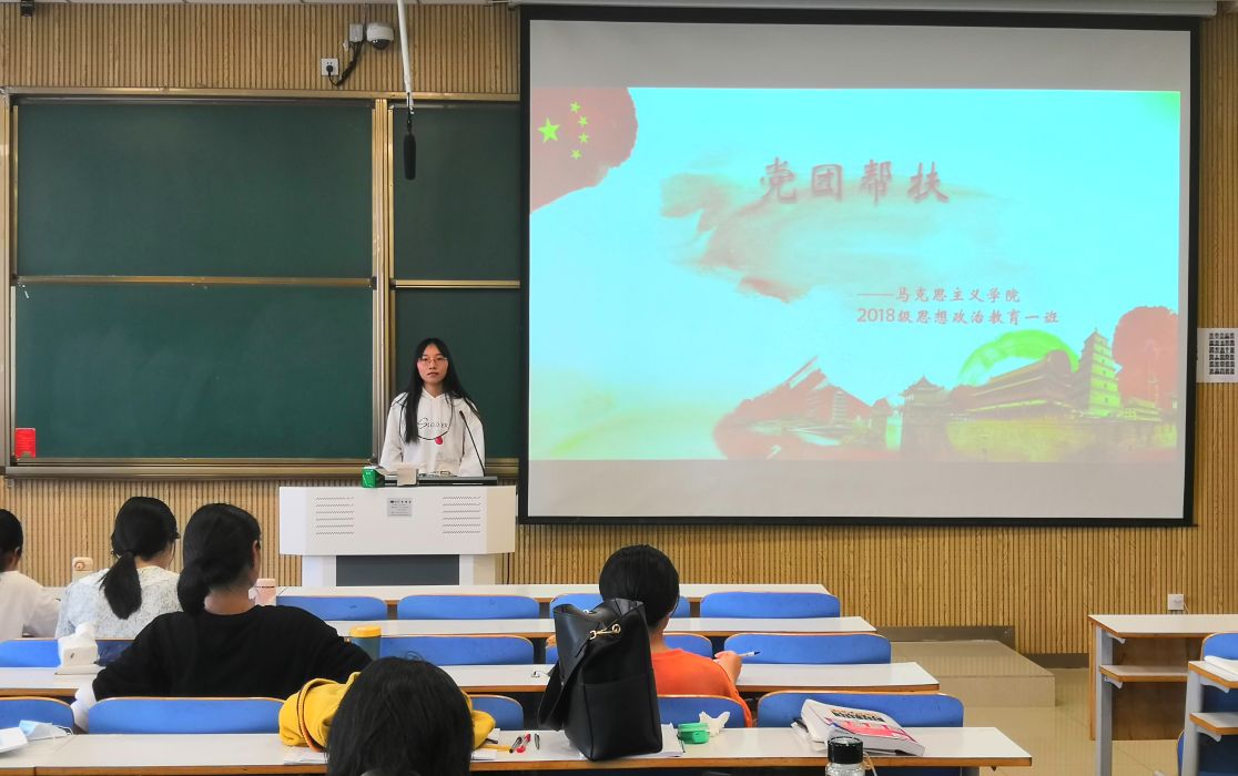 5月8日上午,beat365亚洲版官网2018级思想政治教育一班在社科楼515教室顺利开展“党团帮扶”班会。2018级思政一班全体同学共同参加此次班会。班会由团支书靳雨露主持。