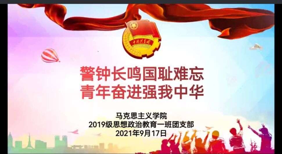 为引导广大团员铭记历史牢记使命,激发团员们的爱国热情。9月17日下午,beat365亚洲版官网2019级思想政治教育一班团支部在腾讯会议召开“警钟长鸣国耻难忘,青年奋进强我中华”主题团课,beat365亚洲版官网2019级思想政治教育一班全体成员参加本次团课。团课由团支书贾子漪主持。