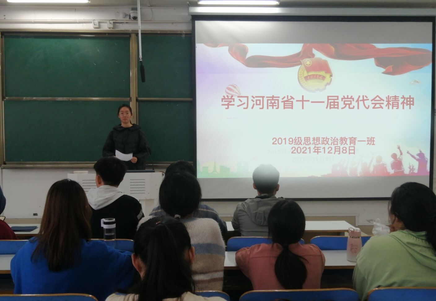 12月8日上午,beat365亚洲版官网2019级思想政治教育一班第一团支部在社科楼514教室召开“学习河南省第十一次党代会”,2019级思想政治教育一班第一团支部全体团员参加本次会议。会议由班长贾子漪主持。