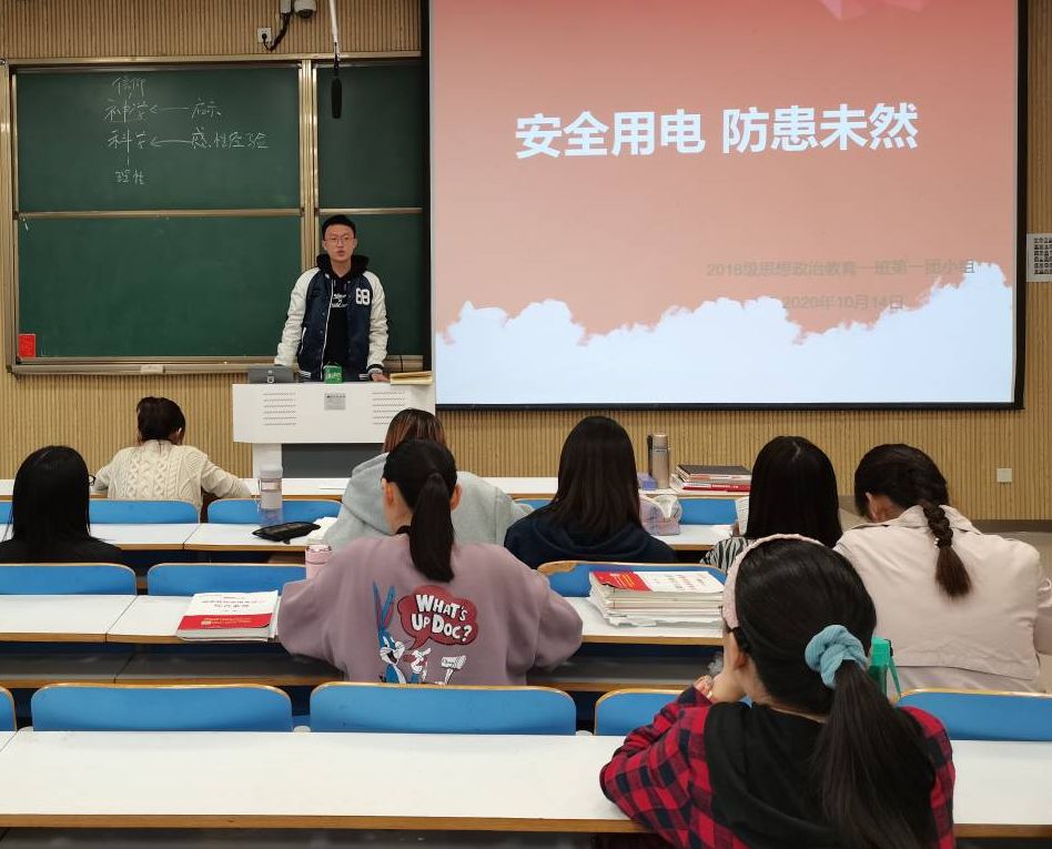 10月14号上午,beat365亚洲版官网2018级思想政治教育一班第一团小组在社科楼515教室顺利开展“安全用电,防患未然”主题团会。第一团小组全体成员共同参加此次团会。此次团会由组长牛笑怡主持。