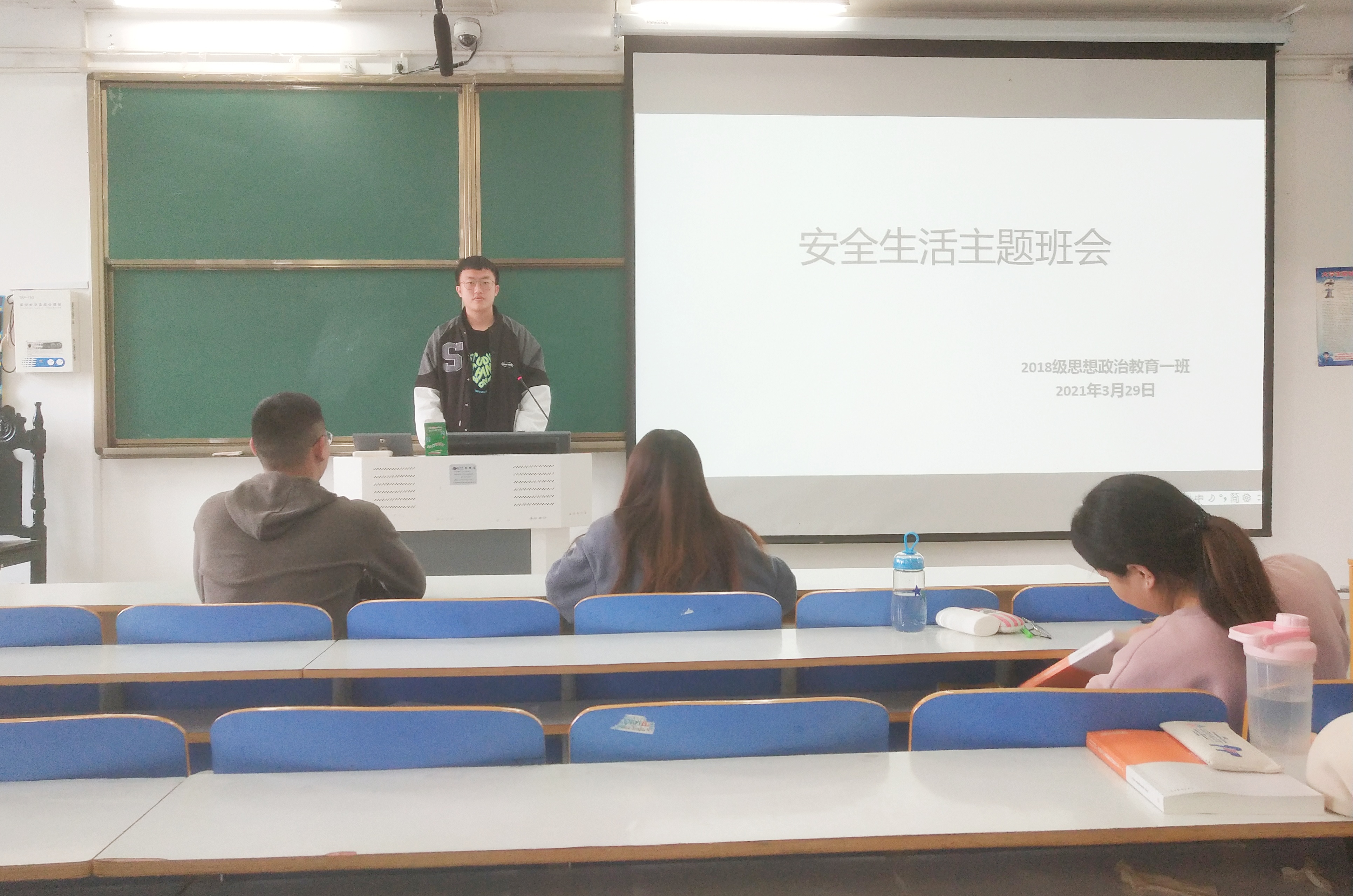 3月29日上午,beat365亚洲版官网2018级思想政治教育一班在社科楼514教室顺利开展安全生活主题班会。2018级思想政治教育一班全体同学参加了本次班会。会议由班长邢子豪主持。
