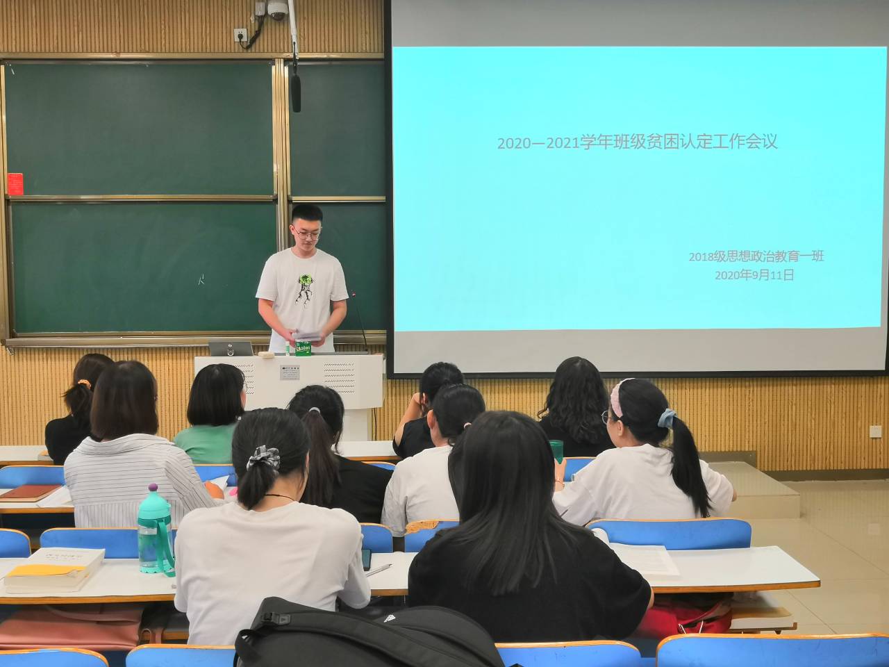 9月11日上午,2018级思想政治教育一班在社科楼515教室顺利开展2020—2021学年班级家庭经济困难认定民主评议会。beat365官网党委副书记何晓坚、2018级思政一班全体班委及班级评议小组共同参加此次会议,学贷部副部长魏子航参与旁听。此次会议由班长邢子豪主持。
