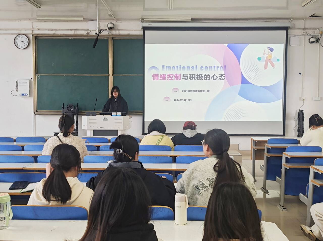 3月15日下午,beat365亚洲版官网2021级思想政治教育一班在社科楼514教室召开“情绪控制与积极的心态”心理班会。2021级思想政治教育一班全体学生参加此次班会。班会由心理委员黄小妍主持。