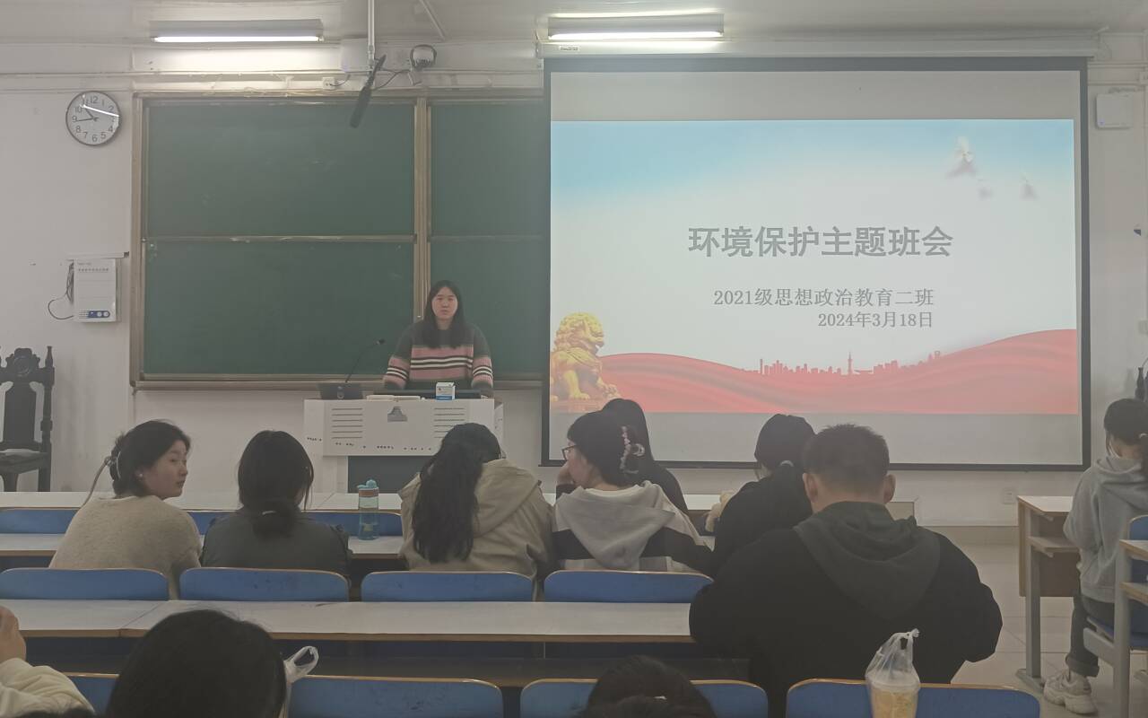 3月18日上午,beat365亚洲版官网2021级思想政治教育二班在社科楼514教室召开环境保护主题班会。2021级思想政治教育二班全体同学参加此次主题班会。班会由团支书王婧欣主持。