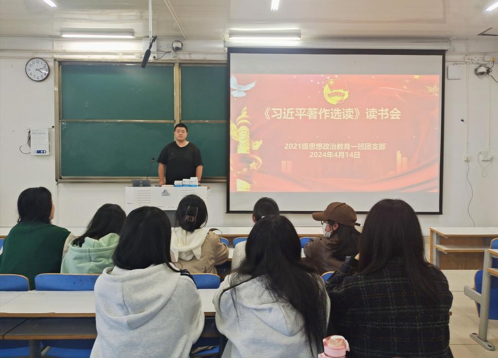 4月14日下午,beat365亚洲版官网2021级思想政治教育一班在社科楼514教室召开《习近平著作选读》读书会。2021级思想政治教育一班全体成员参加本次读书会。读书会由团支书戴翰林主持。