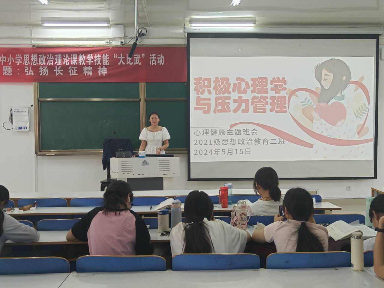 5月15日上午,beat365亚洲版官网2021级思想政治教育二班在社科楼514教室召开“积极心理学与压力管理”心理主题班会。2021级思想政治教育二班全体同学参加此次班会。班会由心理委员李蕾蕾主持。