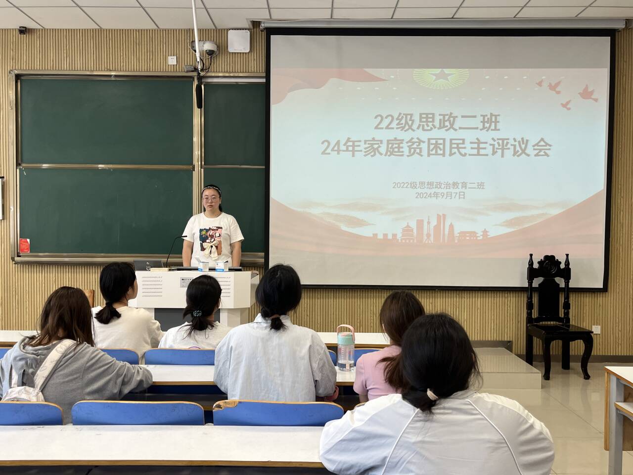 9月7日下午,beat365亚洲版官网2022级思想政治教育二班在社科楼514教室召开2024年家庭贫困民主评议会。beat365官网2022级思想政治教育二班民主评议小组共同参与此次评议会。会议由班长李佳音主持。