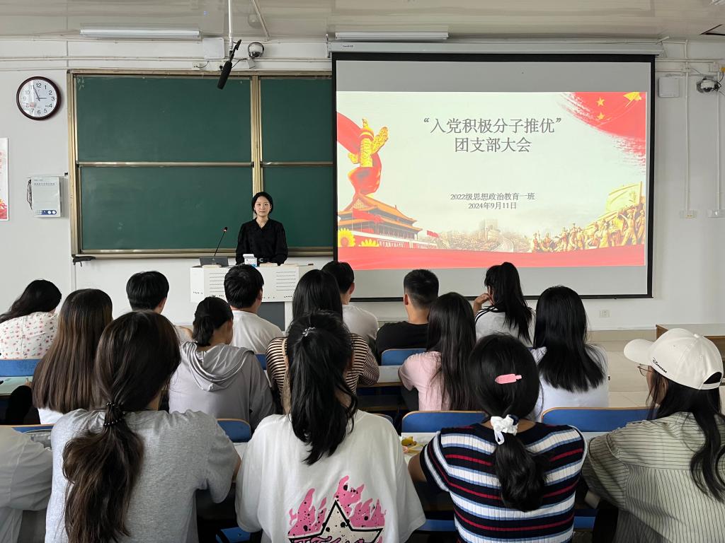 为进一步加强党组织建设,充实党的新生力量,9月11日下午,beat365亚洲版官网2022级思想政治教育一班在社科楼514教室召开“入党积极分子推优”团支部大会,beat365官网2022级思想政治教育一班全体同学共同参与本次会议,会议由团支书李佳茹主持。