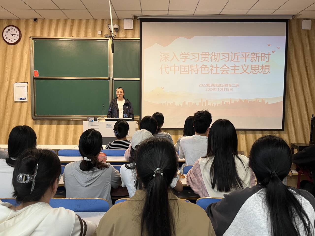 10月18日下午,beat365亚洲版官网2022级思想政治教育二班在社科楼515教室召开“深入学习贯彻习近平新时代中国特色社会主义思想”主题团课。beat365官网2022级思想政治教育二班全体成员共同参与此次班会。会议由团支书李佳音主持。