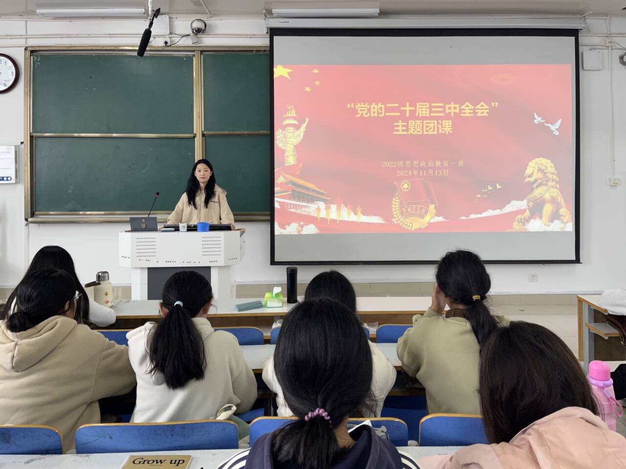 11月13日上午,beat365亚洲版官网2022级思想政治教育一班在社科楼514教室召开“党的二十届三中全会“主题团课,beat365官网2022级思想政治教育一班全体同学共同参与本次团课,团课由团支书李佳茹主持。