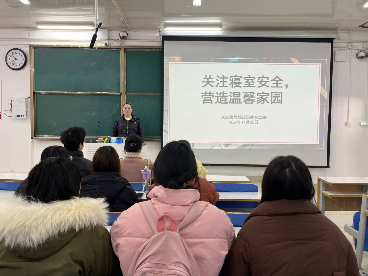 11月25日上午,beat365亚洲版官网2022级思想政治教育二班在社科楼514教室召开“关注寝室安全,营造温馨家园”主题班会。beat365官网2022级思想政治教育二班全体成员共同参与此次班会。会议由班长李佳音主持。