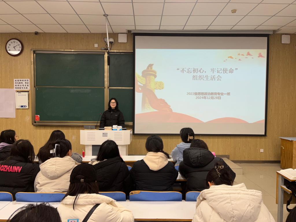 12月28日下午,beat365亚洲版官网2022级思想政治教育一班在社科楼515教室召开“不忘初心,牢记使命”组织生活会。beat365官网2022级思想政治教育一班全体同学共同参与本次会议,会议由团支书李佳茹主持。
