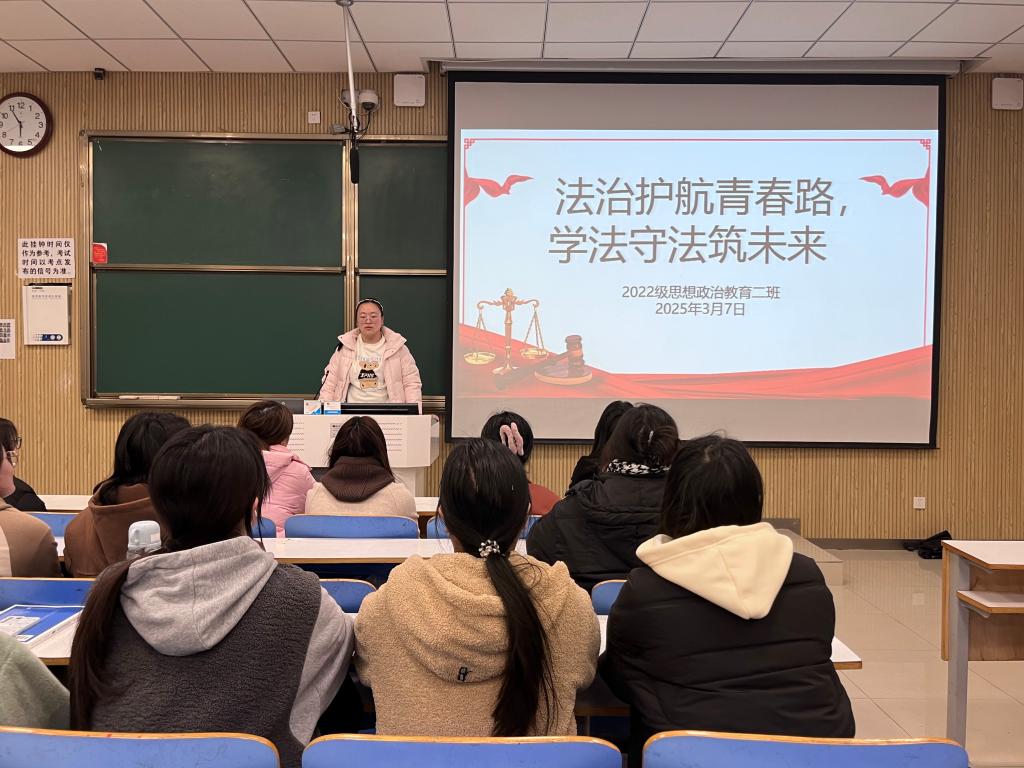 为增强大学生法治观念,筑牢校园安全防线,3月7日下午,beat365亚洲版官网2022级思想政治教育二班在社科楼515教室召开“法治护航青春路,学法守法筑未来”主题班会。beat365官网2022级思想政治教育二班全体成员共同参与此次班会。会议由班长李佳音主持。