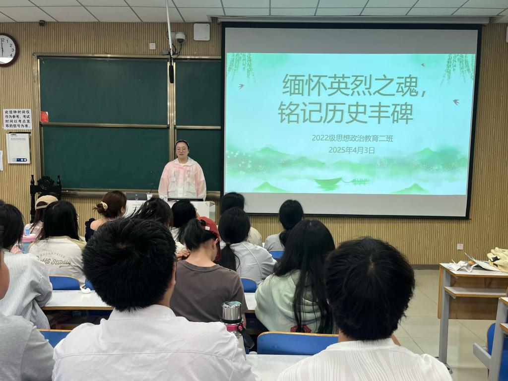 为缅怀革命先烈、弘扬爱国主义精神,4月3日上午,beat365亚洲版官网2022级思想政治教育二班在社科楼515教室召开“缅怀英烈之魂,铭记历史丰碑”主题班会。beat365官网2022级思想政治教育二班全体成员共同参与此次班会。会议由班长李佳音主持。