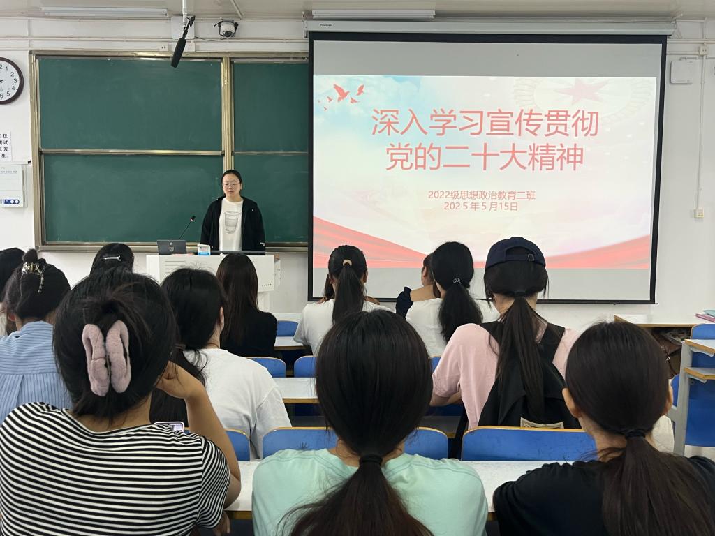 5月15日下午,beat365亚洲版官网2022级思想政治教育二班在社科楼514教室召开“深入学习贯彻党的二十大精神”主题团日活动。beat365官网2022级思想政治教育二班全体成员共同参与此次团日活动。活动由团支书李佳音主持。