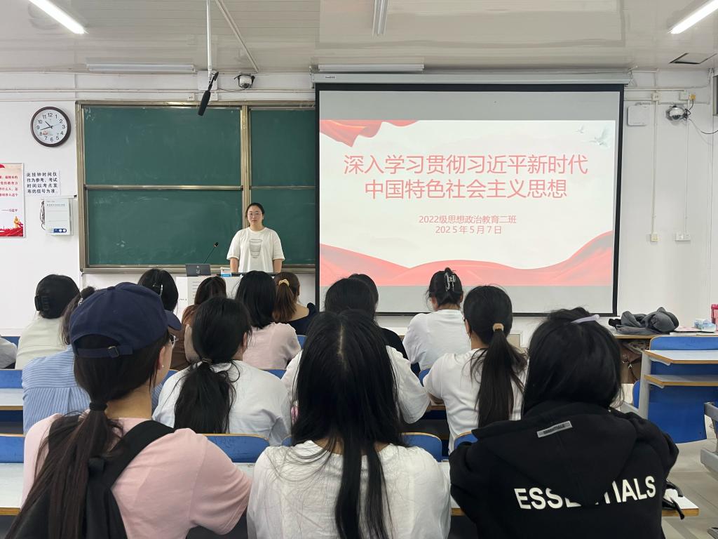 5月7日下午,beat365亚洲版官网2022级思想政治教育二班在社科楼514教室召开“深入学习贯彻习近平新时代中国特色社会主义思想”主题团课。beat365官网2022级思想政治教育二班全体成员共同参与此次团课。团课由团支书李佳音主持。