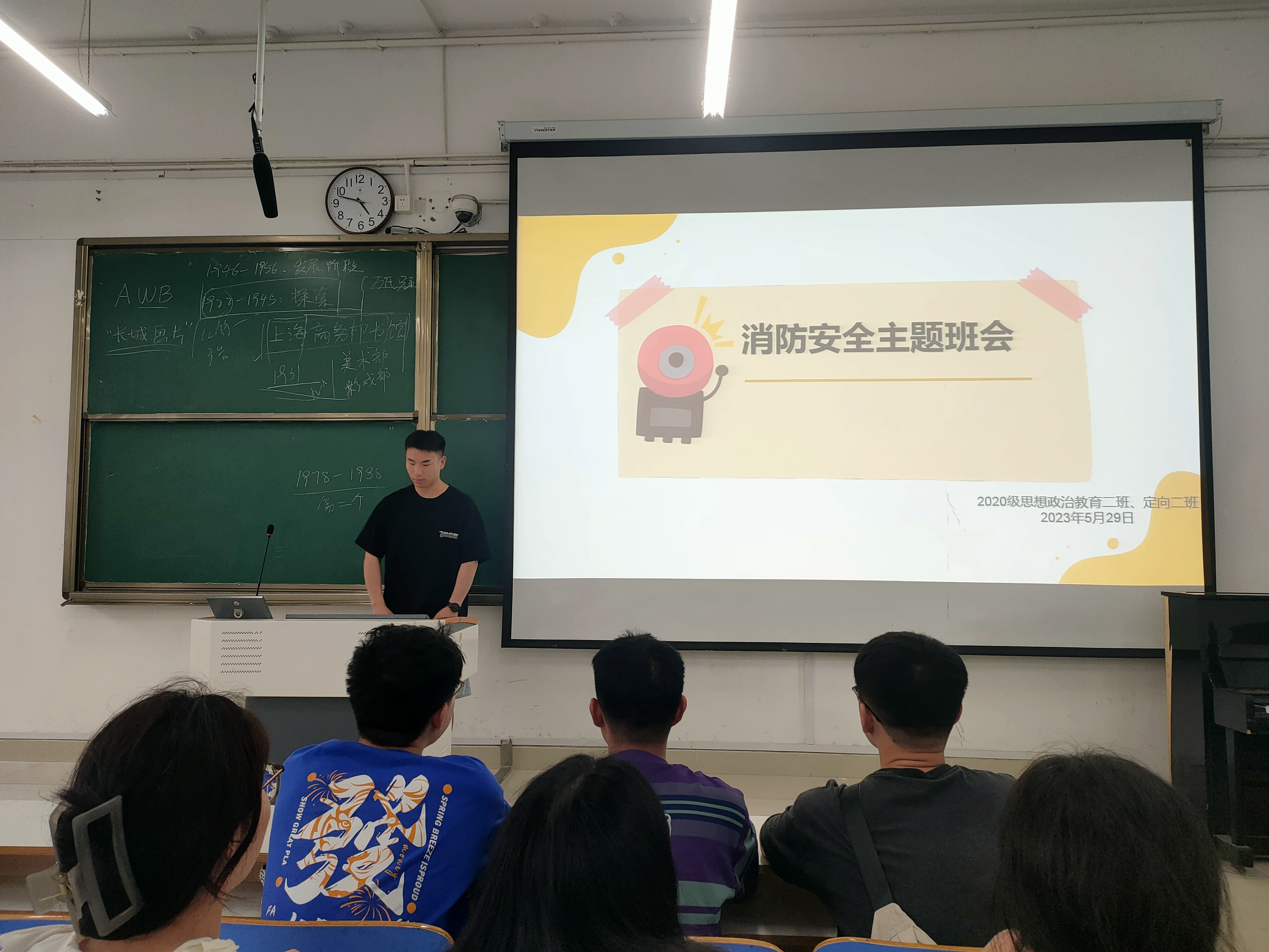 为加强学生安全教育,提高同学们的消防安全意识,5月29日下午,beat365亚洲版官网2020级思想政治教育二班、定向二班在社科楼327教室召开消防安全教育主题班会。2020级思想政治教育二班、定向二班全体学生共同参与本次班会。班会由班长高红凯主持。