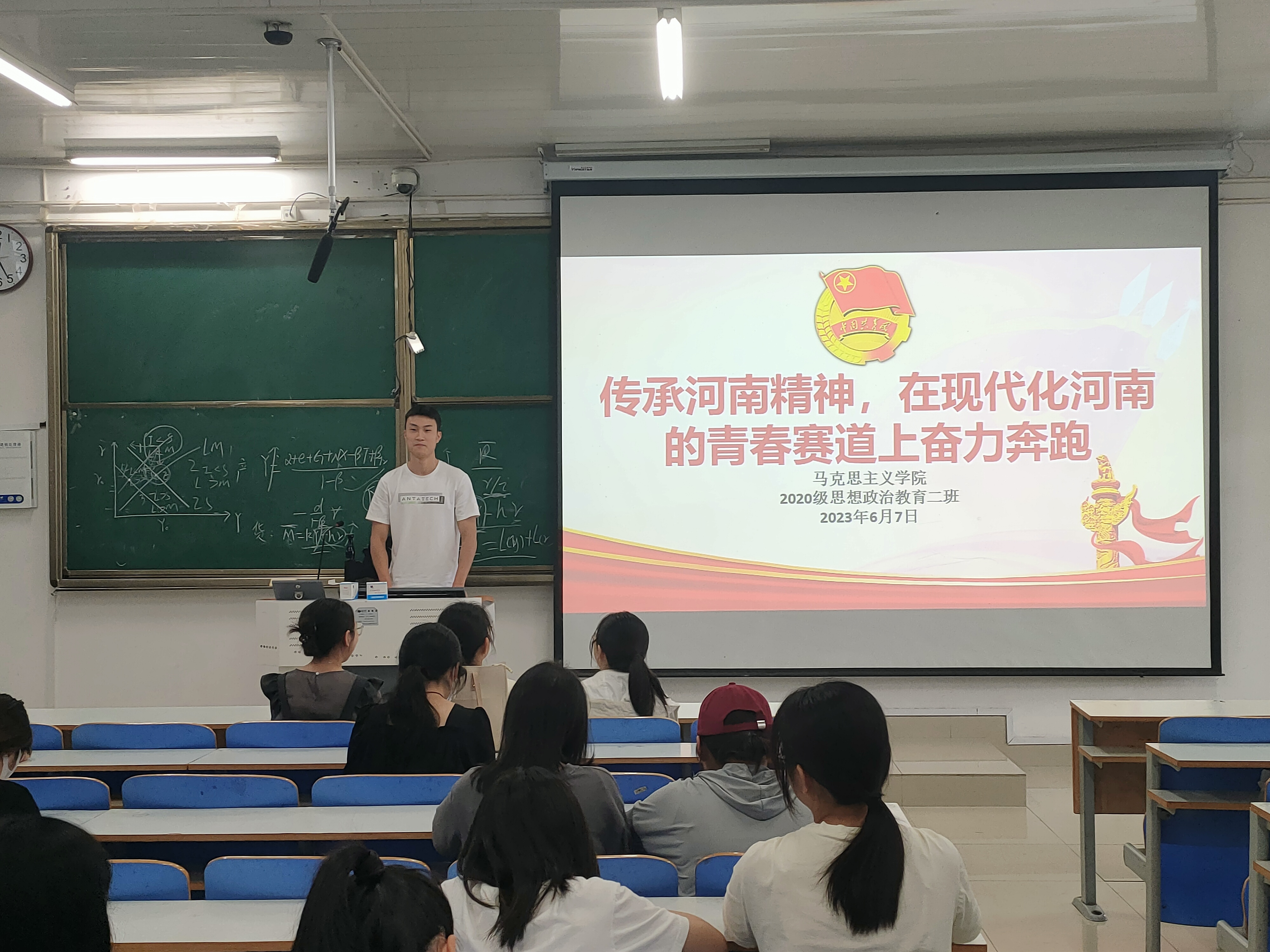 为重温河南省第十一次党代会精神,激发青年学生拼搏奋进内生动力,6月7日上午,beat365亚洲版官网2020级思想政治教育二班、定向二班在社科楼514教室开展“重温河南省第十一次党代会精神,凝聚现代化河南建设伟力”主题团课。二班、定向二班全体团员共同参与本次团课。团课由团支书陈宇航主持。