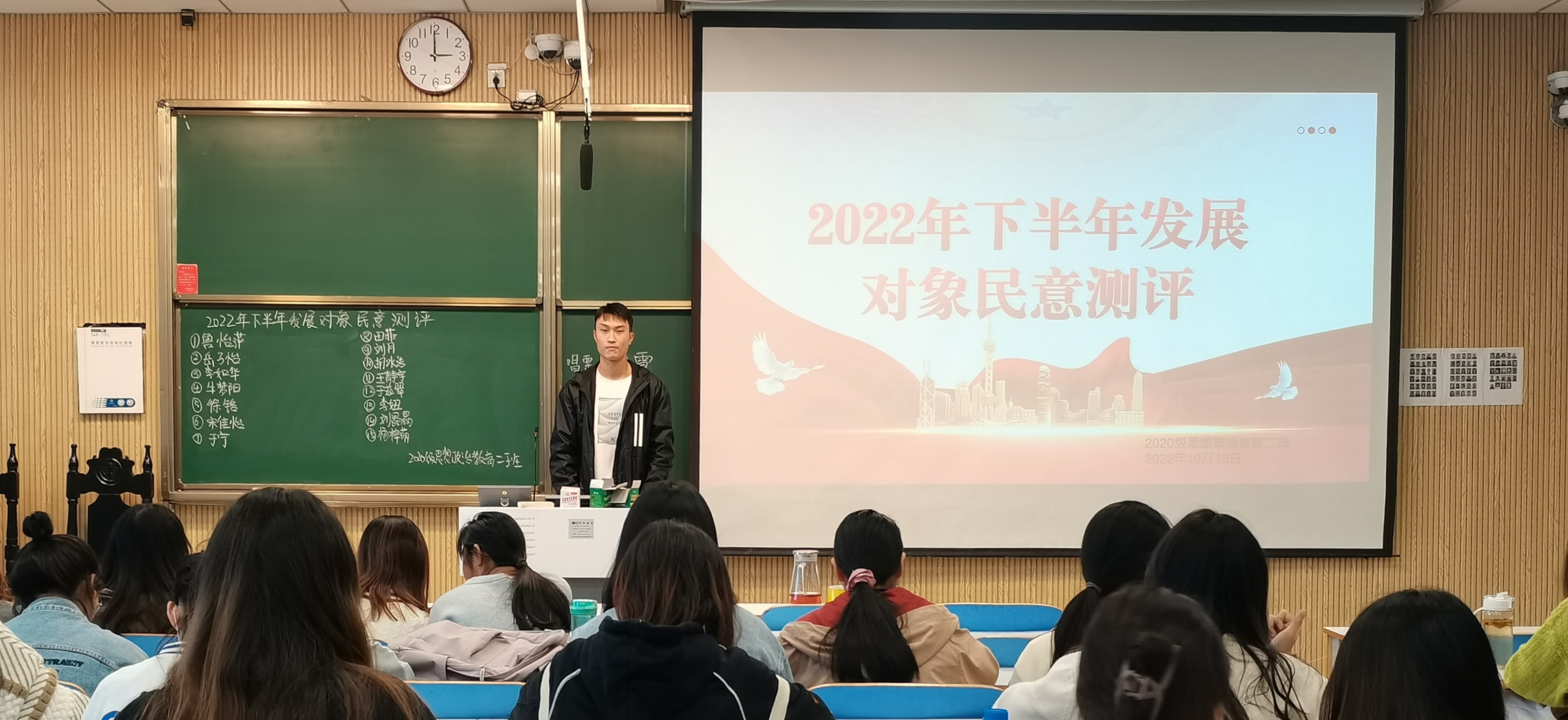 为进一步发展壮大党员队伍,为党支部注入新的活力,10月13日下午,beat365亚洲版官网2020级思想政治教育二班在社科楼515教室召开2022年下半年党员计划发展对象班级民意测评会。2020级思想政治教育二班全体团员共同参加本次会议。会议由团支书陈宇航主持。